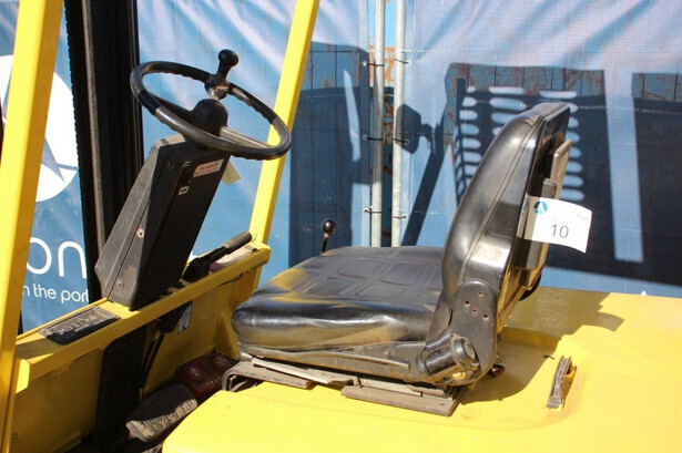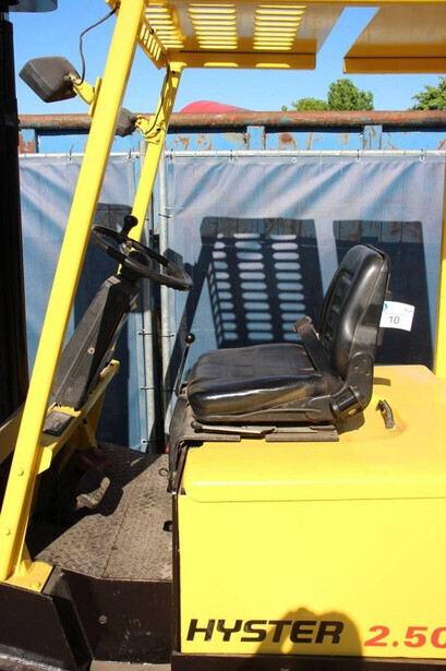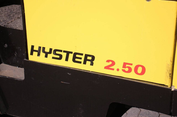 Brand: Hyster Type: J2.50XL Serial number: B168A02650N Year of construction: 1992 Fuel: Electric Mast type: Duplex Sideshift: No Lifting capacity: 2500 kg Lifting height: 3800 mm Operating hours read: 6964 h Machine weight: 4675 kg Tires: Solid tires Color: yellow