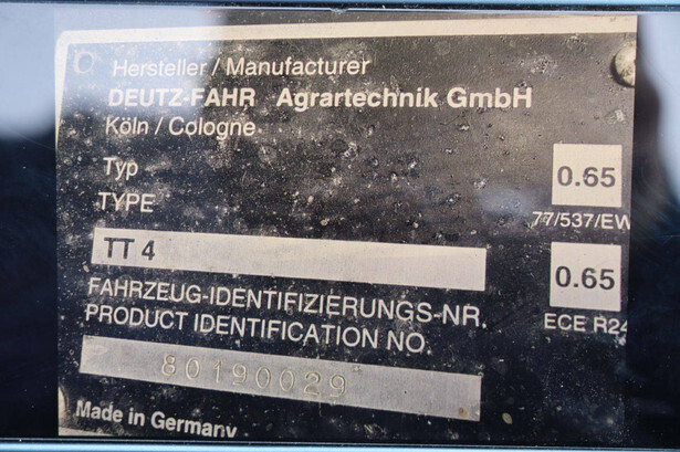Brand: Deutz Fahr Type: Agrotron 130 Serial number: 80190029 Year of construction: 1995 Fuel: Diesel Engine power: 130 HP Engine Brand: KHD DEUTZ Operating hours read: 965 h Tires: Pneumatic tires Color: green