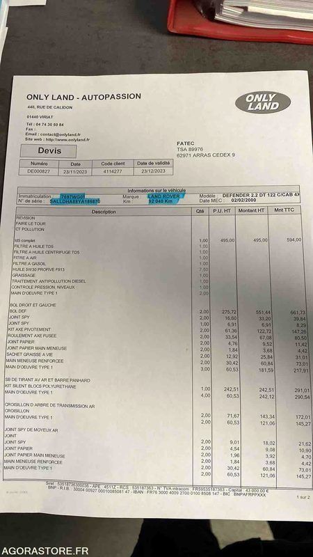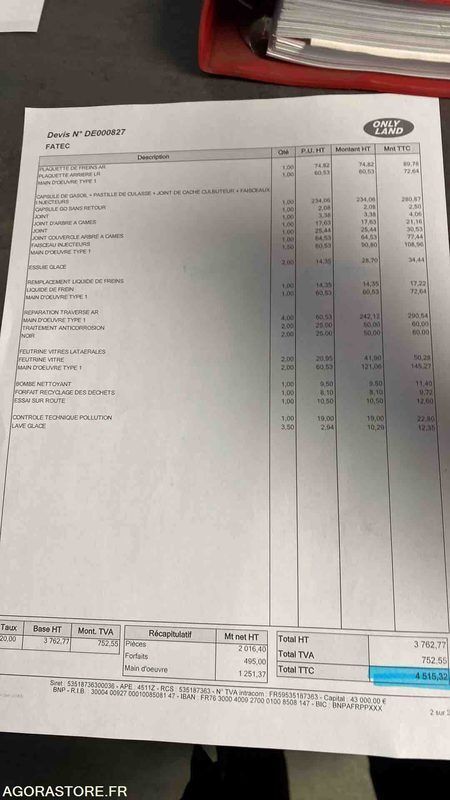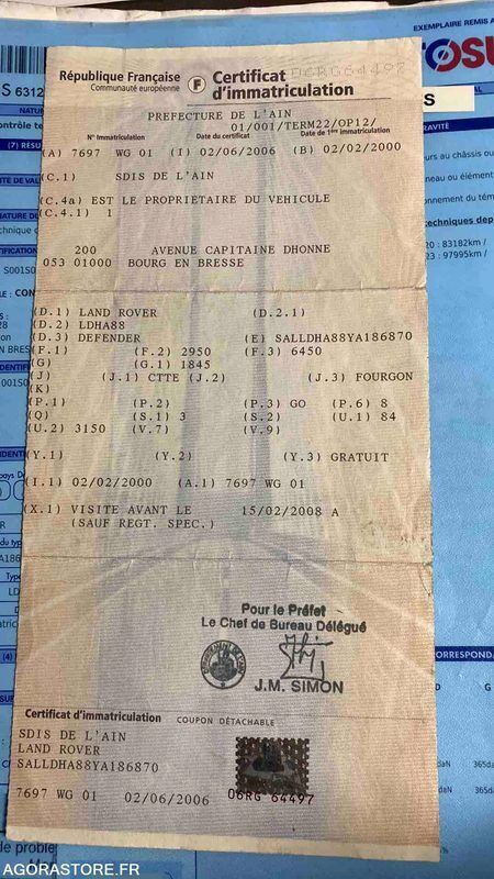 FR: Type de véhicule TS TERRAINS/CHEMINS Nb portes: 3 roulant VOIR RAPPORT