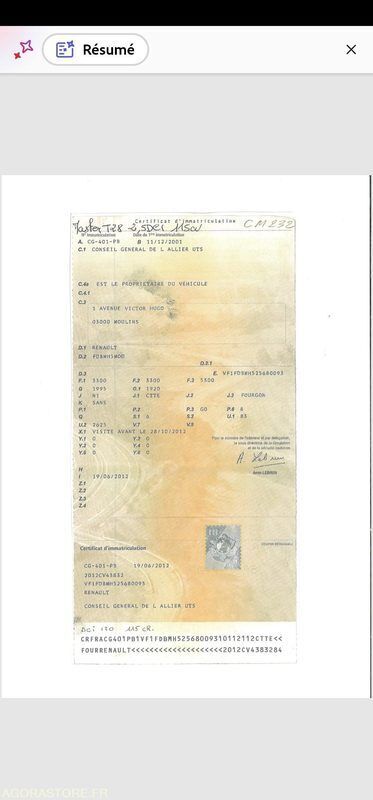 Renault MASTER Color: orange Power: 114 Engine volume: 2463 Fuel: diesel Axle number: 2 Axle 1 common tyre size: 215 65 R16 Gearbox type: manual FR: Type de véhicule FOURGON