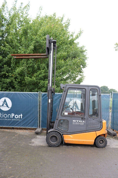 Brand: Still Type: R 60–30 Serial number: 516045000602 Year of construction: 2002 Fuel: Electric Mast type: Duplex Sideshift: No Lifting capacity: 3000 kg Reading operating hours: 8123 h Machine weight: 5069 kg Tires: Solid tires Color: orange