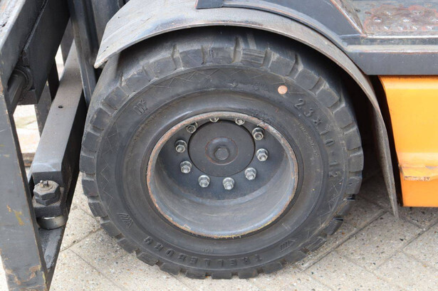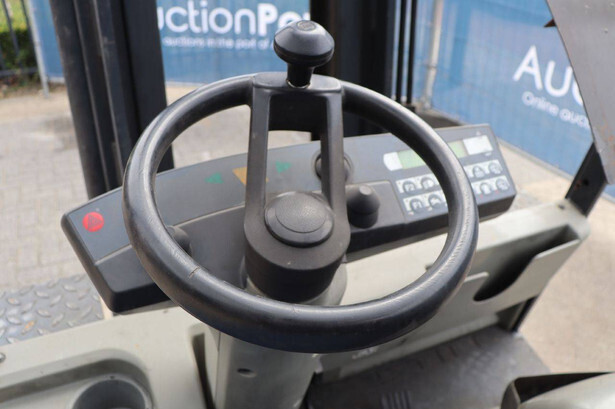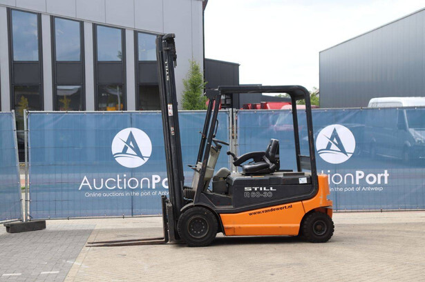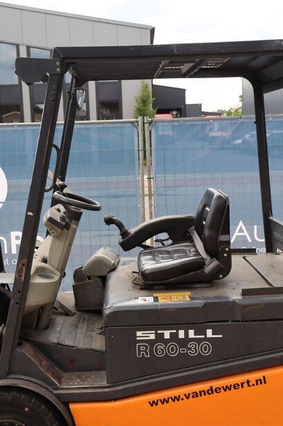 Brand: Still Type: R60-30 Year of construction: 2002 Fuel: Electric Mast type: Triplex Sideshift: Yes Lifting capacity: 3000 kg Lifting height: 4000 mm Operating hours read: 11669 h Machine weight: 6788 kg Tires: Solid tires Color: orange