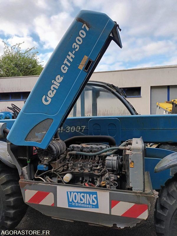 FR: Type de véhicule CHARGEUR ELEVATEUR Date et lieu de visite: Voisins Le Bretonneux (78) sur rdv Etat des pneus: Bon Nombre de godets: 1 Fourches Chargeur élévateur télescopique Génie GTH 3007 de 2004. Présence de rouille sur certaines pièces. Charge maxi 3000kg Hauteur de levée max : 6,90m Longueur de portée max : 4,00m Poids de l'engin : 5900 kg