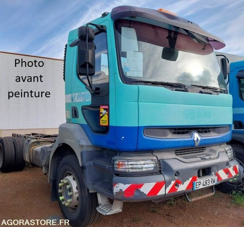 Renault KERAX Power: 30 Engine volume: 11120 Fuel: gas Euro: 3 Axle suspension: spring/spring Axle 1 common tyre size: 315/80R22,5 Gearbox type: manual FR: Type de véhicule Porteur nu Date et lieu de visite: Dép 49 (sur rendez-vous) Dimensions (Longueur, Largeur, Hauteur): 8,30 m x 2,55 m x 3,30 IMPORTANT: VENTE EN L'ETAT Etat carrosserie: Peinture neuve Etat intérieur: Bon Etat des pneus: Bon Climatisation: Non Version: 33DVB246CC2 PV / PTAC / PTRA: PTAC 26T Etat moteur boite pont: Correct Webasto: Non Crit'air: Non Dernier passage aux mines: 16/02/2024 Ad Blue: Non Date du passage limiteur: 12/02/2024 Porteur ayant été équipé d'un hydrocureur Présence d'une prise pleine puissance Échappement vertical Absence de batterie pas de feux à l'arrière Contrôle technique non valide Transport par porte char obligatoire Peinture neuve refaite en novembre 2025 Ref No:399808 VIN: VF633DVB000104356