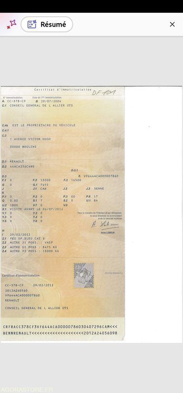 Renault MIDLUM Color: orange Fuel: diesel Axle 1 common tyre size: 265 70 r19.5 FR: IMPORTANT: Le véhicule doit impérativement être retiré avec une remorque