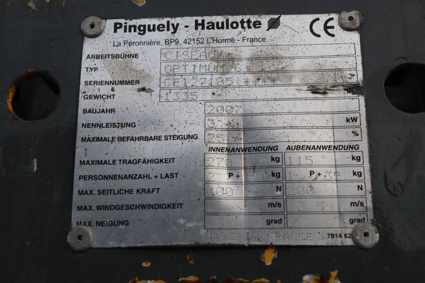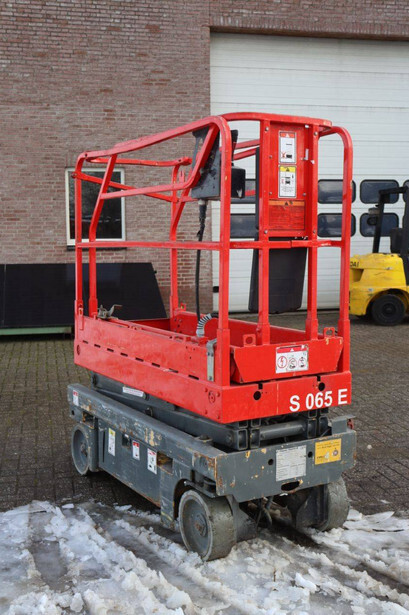 Brand: Haulotte Type: Optimum 6 Serial number: CE127185 Year of construction: 2007 Fuel: Electric Lifting capacity: 270 kg Working height: 6 m Operating hours read: 1177 h Machine weight: 1335 kg Chassis: Wheels Type: Scissor lift Tires: Non-marking tires Color: red