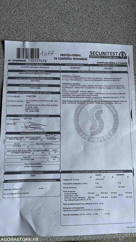 Citroen C1 Color: white Power: 54 Engine volume: 1398 Fuel: gas Axle 1 common tyre size: 155/55/14 75T Gearbox type: manual FR: Type de véhicule BERLINE Nb portes: 5 Etat carrosserie: Endommagé Etat intérieur: Correct Etat des pneus: Bon Transmission: AVANT Version: 1.4 HDI Etat soubassements: Bon Véhicule roulant Moteur tournant Un rapport d'inventaire est fourni dans la rubrique « documents » Ref No:WL49494 VIN: VF7PN8HTC89736448