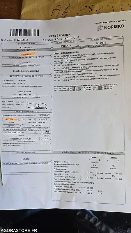 Renault MASTER Power: 120 Engine volume: 2464 Fuel: diesel Axle number: 2 Axle 1 common tyre size: 225/65R16 Gearbox type: manual FR: Type de véhicule FOURGON Dimensions (Longueur, Largeur, Hauteur): largeur : 199 longueur : 590 Etat carrosserie: Porte latérale coulissante hs, mais état global, correct, malgré quelques égratignures Etat intérieur: Très moyen Etat des pneus: 70% d usure avant arriere Transmission: AVANT Etat soubassements: Non verifiable Véhicule non roulant Moteur tournant Un rapport d'inventaire est fourni dans la rubrique « documents » Ref No:411181 VIN: VF1FDC1L641799100