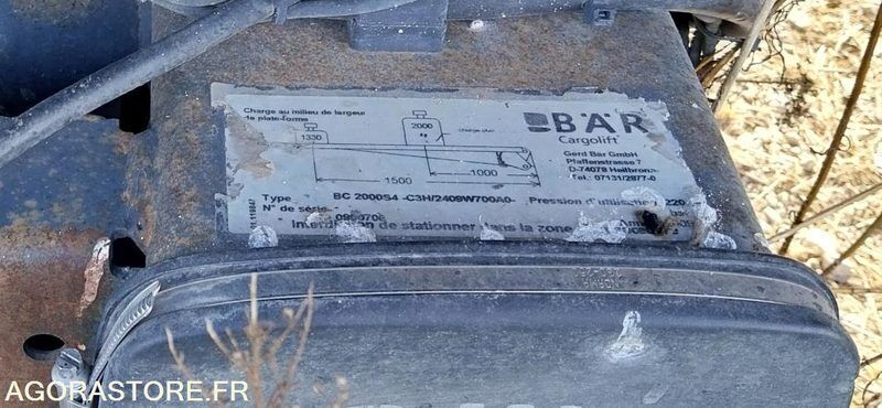 Renault Midlum Color: white Power: 240 Fuel: diesel Euro: 4 Axle wheelbase: 6500 Axle number: 2 Axle configuration: 4x2 Axle suspension: spring/spring Axle 1 common tyre size: 285/70R19.5 Gearbox type: manual FR: Type de véhicule Camion Fourgon Hayon Date et lieu de visite: Sur rdv (26) Dimensions (Longueur, Largeur, Hauteur): L : m - l : m IMPORTANT: Vente en l'état, réservée aux négociants de matériels roulants ou de matériels de travaux publics. (hors location et collecte de déchets) Déflocage obligatoire du matériel par l'acheteur à sa charge , avant mise en ligne d’annonce de revente Etat carrosserie: Moyen Etat intérieur: moyen Etat des pneus: pneus : mauvais Cylindrée: 7 litres Version: 44AHL5CC65 Puissance (CV): 240 ch PV / PTAC / PTRA: 8,3t / 16t Etat moteur boite pont: Moteur : fonctionne, boîte de vitesses : fonctionne Webasto: non Dernier passage aux mines: 23/07/2025 Ad Blue: non Date du passage limiteur: périmé Date du passage tachy: périmé non remorquant empattement : 6500 mm hayon rabattable BAR Cargolift 2000 kg Périmé au contrôle technique limiteur et chronotachygraphe N'a pas roulé depuis plus d'un an Plateau du Hayon fissuré au niveau des fixations (voir photos) Caisse fourgon en mauvais état plancher et panneaux détériorés Ref No:415199 VIN: VF644AHL000004275