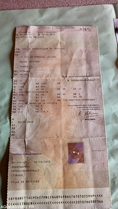 Citroen C1 Power: 68 Engine volume: 998 Fuel: petrol Gearbox type: manual FR: Type de véhicule BERLINE Nb portes: 5 Etat carrosserie: Endommagé Etat intérieur: Présence d'eau dans le coffre Etat des pneus: Bon Transmission: AVANT Version: 1.0 12V Etat soubassements: Bon Véhicule roulant Moteur tournant Un rapport d'inventaire est fourni dans la rubrique « documents » Ref No:VM49494 VIN: VF7PNCFB489498647