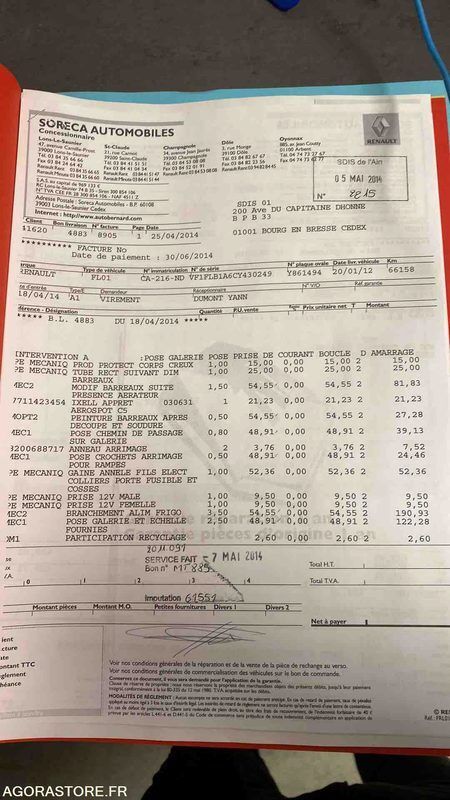 FR: Type de véhicule FOURGON Transmission: AVANT Version: 2.0 DCI Bon état VOIR RAPPORT EN PJ