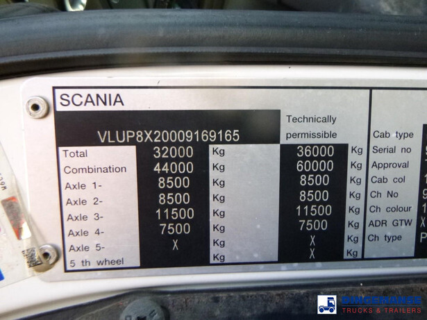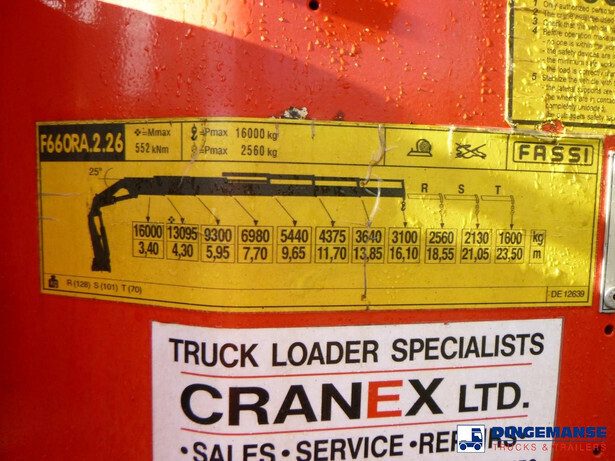 NON DUTY FREE VEHICLE, REQUIRES CUSTOMS CLEARANCE // RIGHT-HAND-DRIVE // Fassi F660 RA 2.26 loading crane with hook, Year of construction 2012, 6 Hydraulic extensions, Max reach 16.10 meters, 3100 kg at 16.10 meters, Hook, 4 support legs, Radio control, Plateau dimensions 765x250 cm, Twist locks for 20 ft., VGB Hitch // Truck 8x2, Euro 5, Manual gearbox with 8 gears, Diff lock, Steel front suspension, Air rear suspension, 4th axle lift and steering axle, Day cabin, Air conditioning, Digital tachograph, RIGHT-HAND-DRIVE, Shipment dimensions 1180x250x365 cm