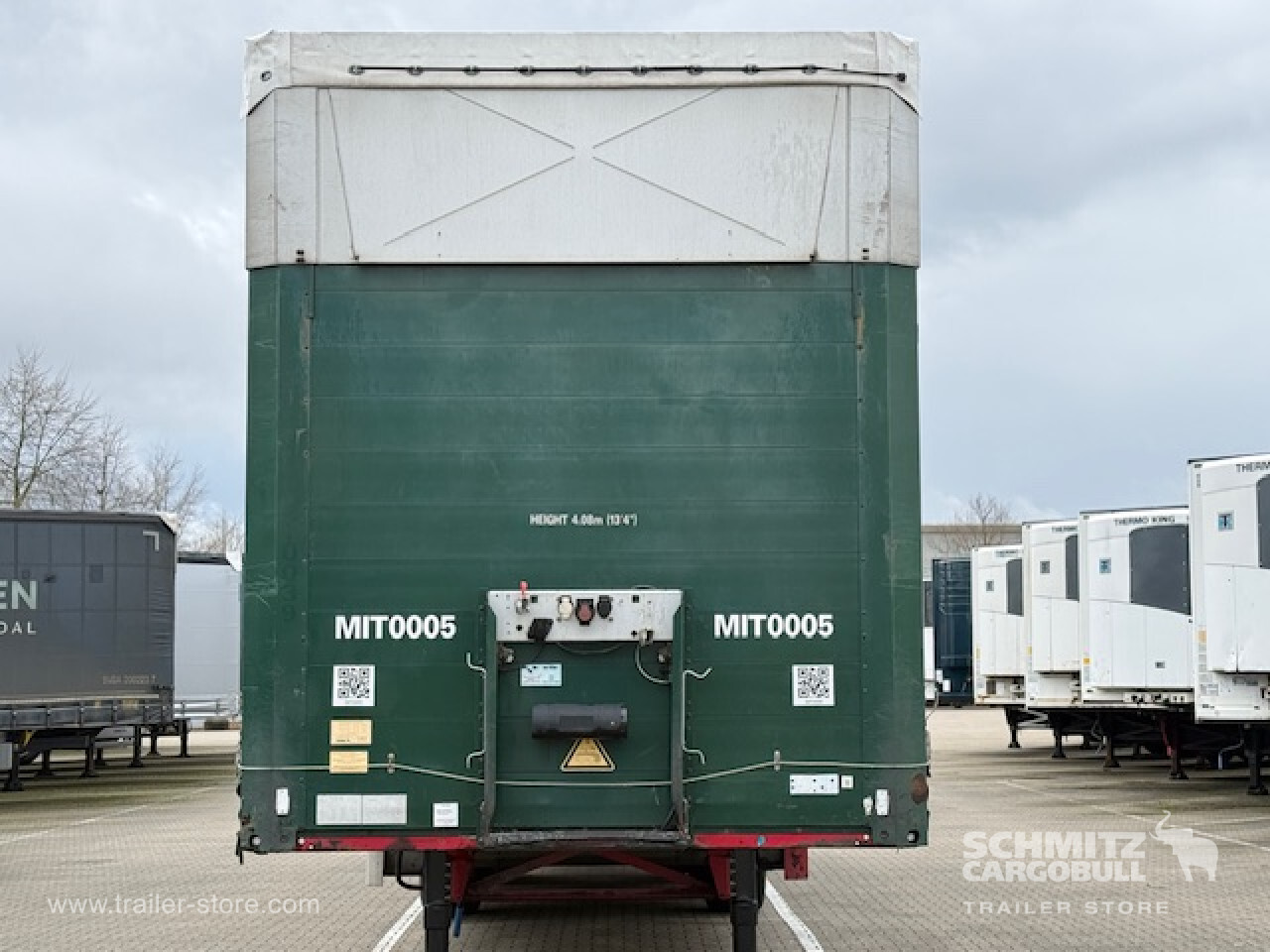 Remarks: **Safety**\\Rear underrun, Antilock Braking System ABS\\\\**Exterior**\\Air suspension, Ferry lashings, 1x15 and 2x7 pin plug, Antispray, Turnable corner stanchions\\\\**Cargo securing**\\Cargo securing with certificate, DIN EN 12642 (code XL) certificate, Punched load securing side rave\\\\**Brake system**\\Disc brake, Schmitz ROTOS\\\\**Floor**\\Reinforced floor\\\\**Loading area**\\Length 13.620 mm, Width 2.480 mm, Height 3.000 mm, Volume 101 m³\\\\**Tyre sizes**\\ 445/45 19.5 , 445/45 19.5 , 445/45 19.5\\\\**Other dimensions and weights**\\Payload: 31.960 kg, GVW: 39.000 kg\\\\----