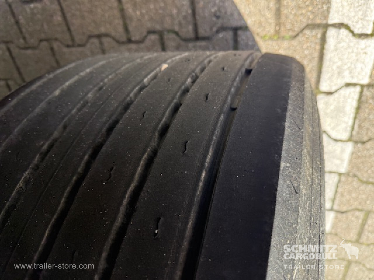 Remarks: **Safety**\\Rear underrun, Antilock Braking System ABS, Telematics system: deur en koppelsensor, Tyre pressure control\\\\**Exterior**\\Air suspension, Ferry lashings, 1x15 and 2x7 pin plug, Antispray, Turnable corner stanchions, Dynamic ramp protection (DRP)\\\\**Cargo securing**\\Cargo securing with certificate, DIN EN 12642 (code XL) certificate, Punched load securing side rave\\\\**Brake system**\\Disc brake, Schmitz ROTOS\\\\**Floor**\\Reinforced floor\\\\**Loading area**\\Length 13.620 mm, Width 2.480 mm, Height 3.000 mm, Volume 101 m³\\\\**Tyre sizes**\\ 445/45 19.5 , 445/45 19.5 , 445/45 19.5\\\\**Other dimensions and weights**\\Payload: 31.960 kg, GVW: 39.000 kg\\\\----
