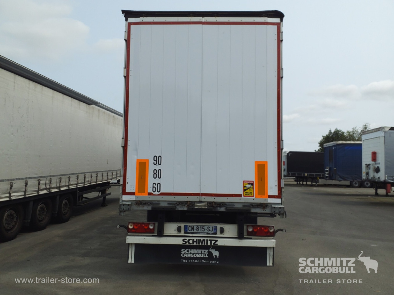 Remarks: **Safety**\\Rear underrun, Antilock Braking System ABS, Hubodometer\\\\**Exterior**\\Air suspension, Pallet box, Toolbox, Bolted chassis, Sliding roof, 1x15 and 2x7 pin plug, Antispray, Lifting roof\\\\**Cargo securing**\\Cargo securing with certificate, DIN EN 12642 (code XL) certificate, Wooden - support slats\\\\**Brake system**\\Disc brake, Schmitz ROTOS\\\\**Floor**\\Wooden floor, Lashing rings in floor\\\\**Loading area**\\Length 13.620 mm, Width 2.480 mm, Height 2.900 mm, Volume 97 m³\\\\**Tyre sizes**\\1. Achse: 385/65 R22.5 , Tread depth: 9 mm / 10 mm, 2. Achse: 385/65 R22.5 , Tread depth: 8 mm / 8 mm, 3. Achse: 385/65 R22.5 , Tread depth: 8 mm / 9 mm\\\\**Other dimensions and weights**\\GVW: 38.000 kg\\\\----Disques de frein Essieu 1 reste 43 mm Disques de frein Essieu 2 reste 42.5 mm Disques de frein Essieu 3 reste 42 mm Mines : 04/2026