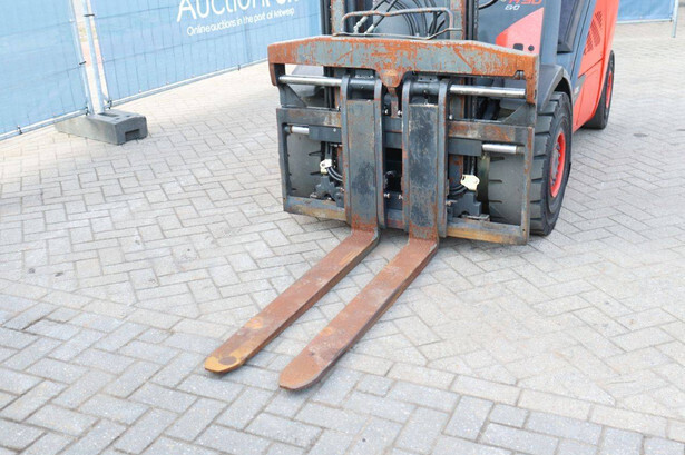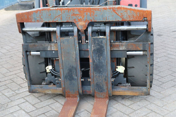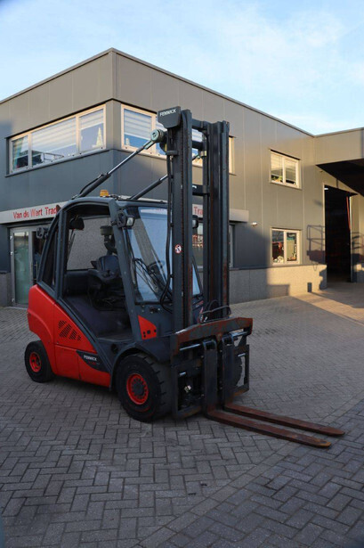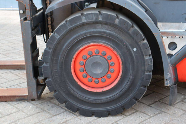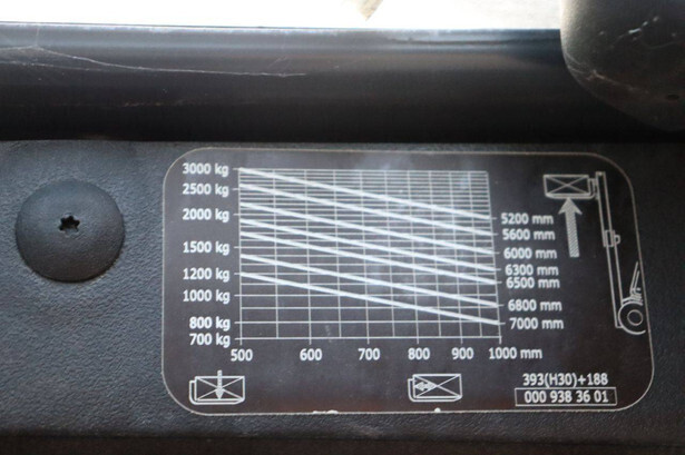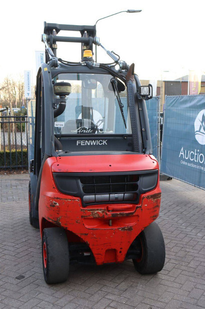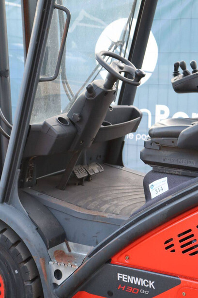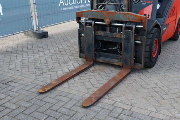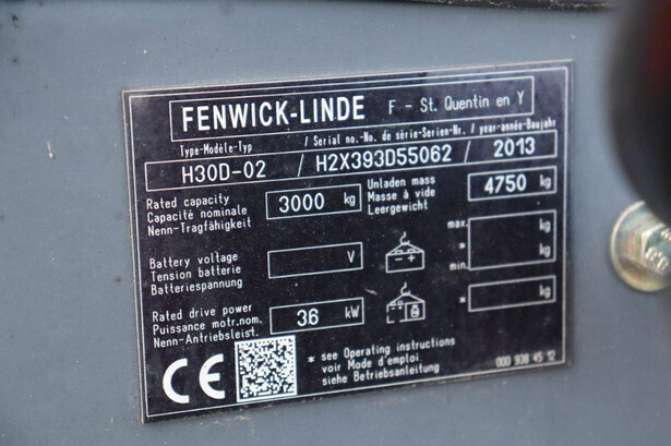 Brand: Fenwick-Linde Type: H30D-02 Serial number: H2X393D55062 Year of construction: 2013 Fuel: Diesel Mast type: Duplex Sideshift: Yes Lifting capacity: 3000 kg Lifting height: 7000 mm Operating hours read: 5486 h Machine weight: 4750 kg Tires: Solid tires Color: red
