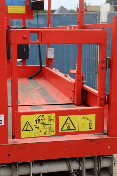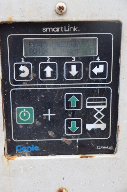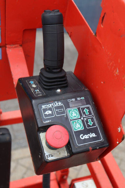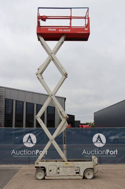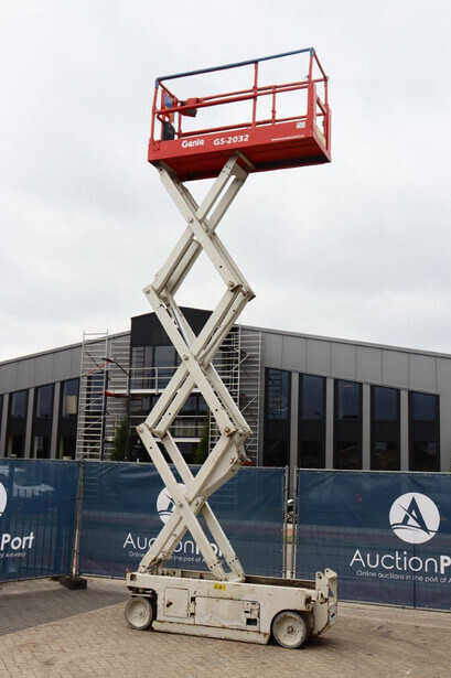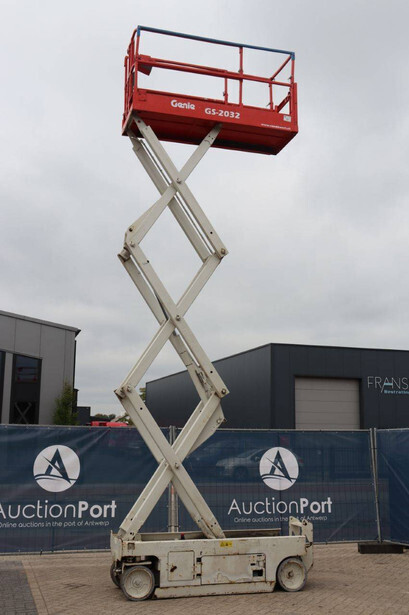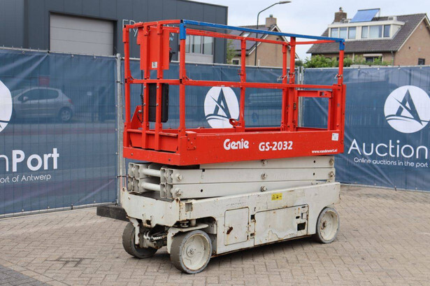 Brand: Genie Type: GS-2032 Serial number: GS3213-10861 Year of construction: 2013 Fuel: Electric Lifting capacity: 363 kg Working height: 8 m Operating hours read: 484 h Chassis: Wheels Type: Scissor lift Tires: Non-marking tires Color: red