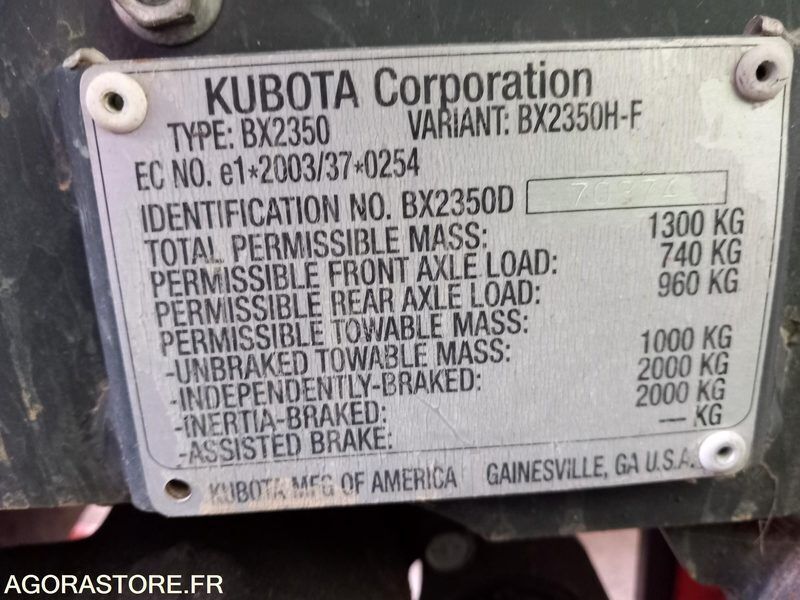 FR: Type de véhicule MICROTRACTEUR Date et lieu de visite: sur RDV, Mr Alguayrez: 06 08 22 17 62 IMPORTANT: VENTE EN L'ETAT SANS GARANTIE Prix d'achat: 20500 € HT en 2013 Etat carrosserie: moyen (photos) Type de boîte de vitesses: transmission 4 roues motrices roulant défauts constatés liste non exhaustive suspicion joint de culasse jeu important dans système relevage du panier fuite huile pont arrière manchon évacuation herbe abimé (photo) capot moteur fendu (photo) batterie HS pneus usés autres défauts visibles sur les photos nécessite une remise en route