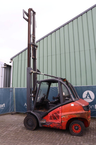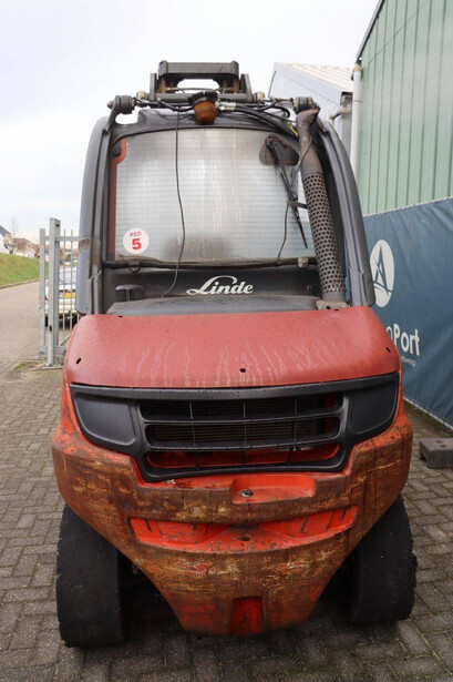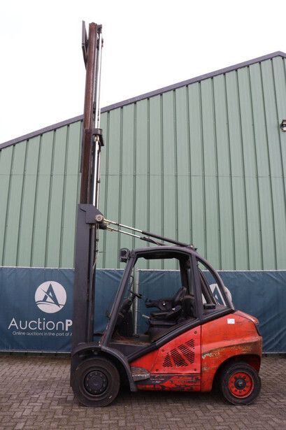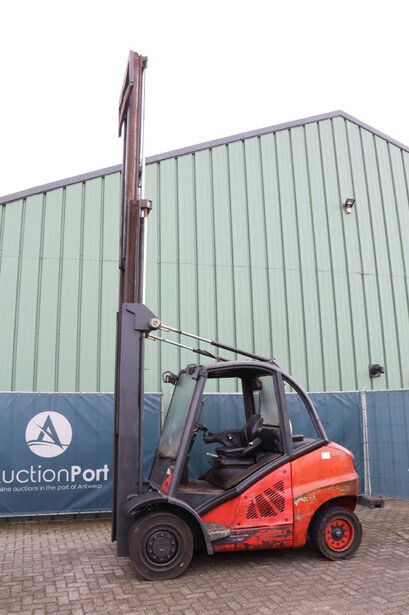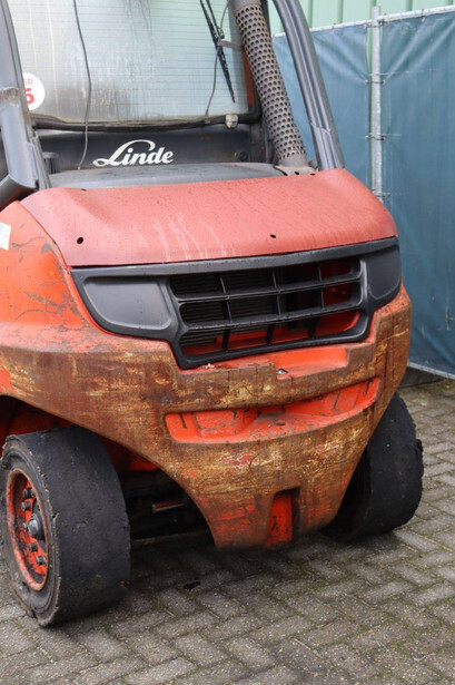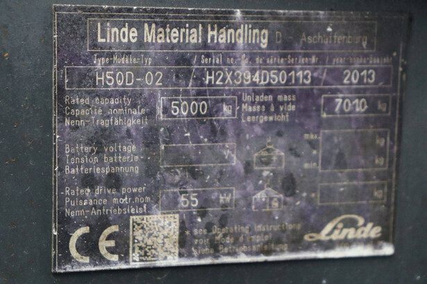 Brand: Linde Type: H50D-02 Serial number: H2X394D50113 Year of construction: 2013 Fuel: Diesel Mast type: Triplex Sideshift: No Lifting capacity: 5000 kg Lifting height: Not known Reading operating hours: 15553 h Machine weight: 7010 kg Tires: Not known Color: red Options: Work lighting Driving lights Windshield wipers Rearview mirror Electronic display Machine description: Machine starts, drives, lifts and lowers.