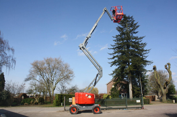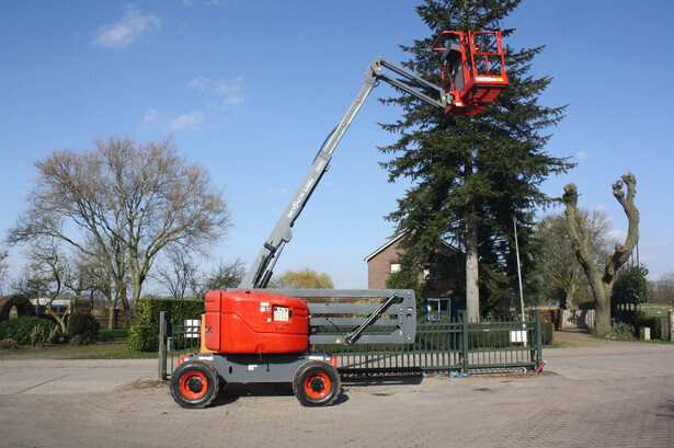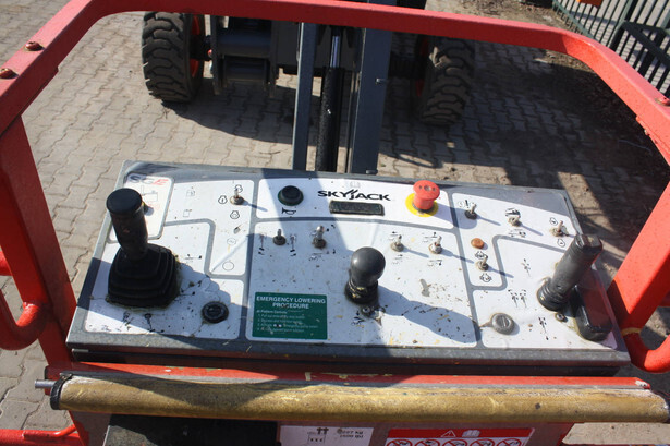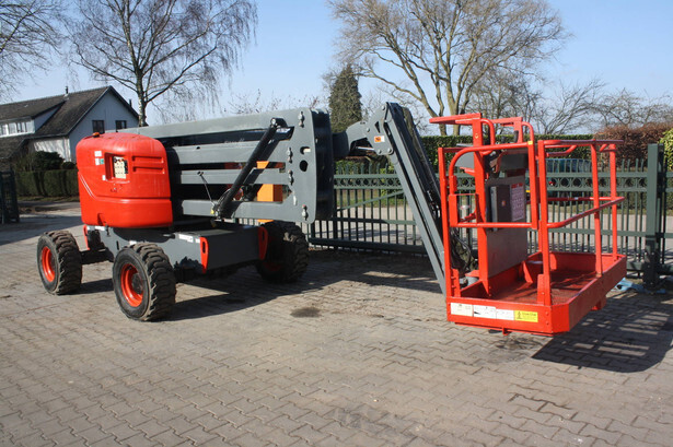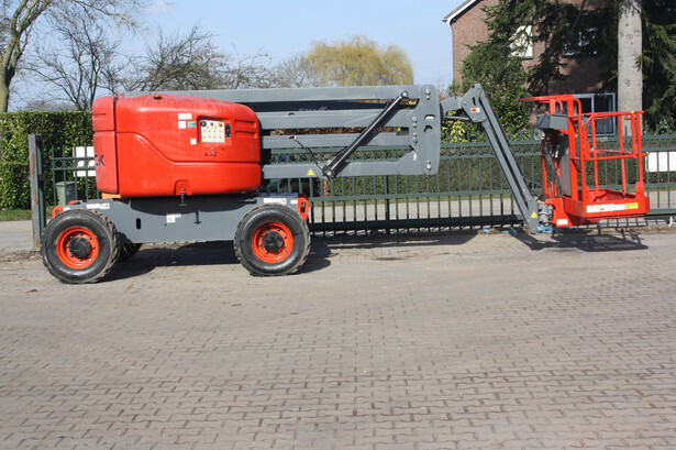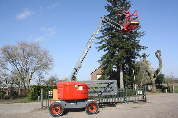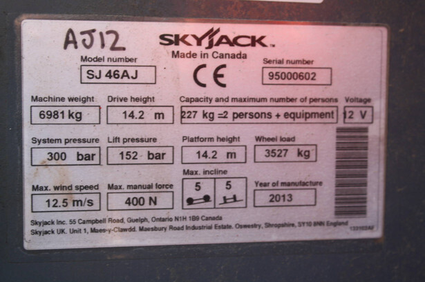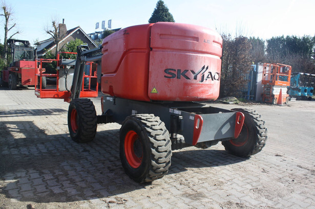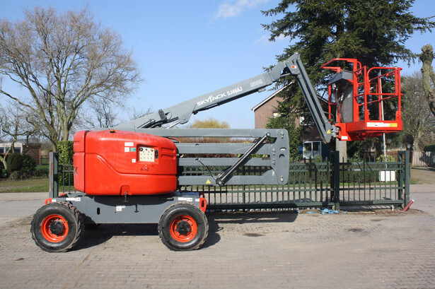 Brand: Skyjack Type: SJ 46AJ Serial number: 95000602 Year of construction: 2013 Fuel: Diesel Lifting capacity: 227 kg Working height: 16.2 m Operating hours read: 1184 h Machine weight: 6981 kg Chassis: Wheels Type: Articulated boom lift Tires: Pneumatic tires Color: red