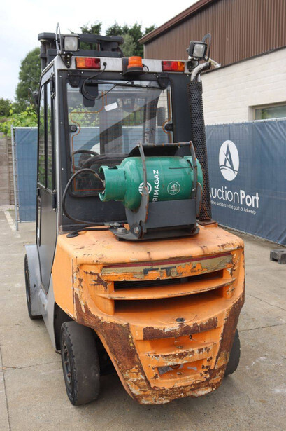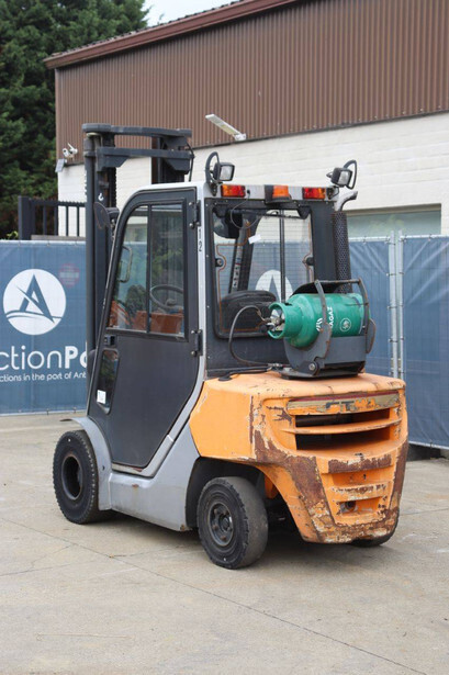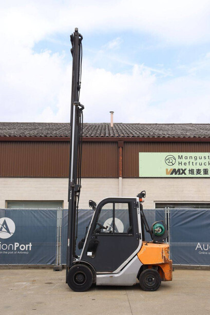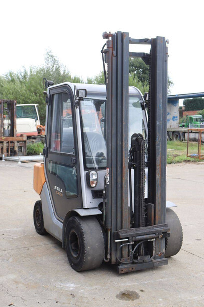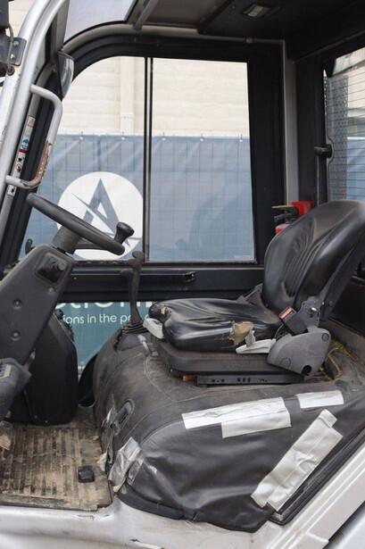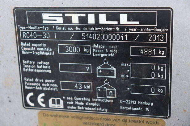 Brand: Still Type: RC40-30 T Serial number: 514020D00041 Year of construction: 2013 Fuel: LPG Mast type: Triplex Sideshift: Yes Lifting capacity: 3000 kg Lifting height: 5100 mm Operating hours read: 7385 h Machine weight: 4881 kg Tires: Solid tires Color: orange Options: Work lighting Driving lights Closed cabin Windshield wipers Climate control Electronic display Front loader Machine description: Machine starts, drives, lifts and lowers.