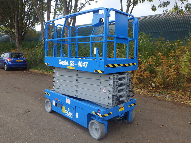 Brand: Genie Model: GS-4047 Type: Scissor lift Serial number: GS4714C-1240 Year of construction: 2014 Operating hours read: 392h Fuel: Electric battery Working height: 13.7m Lifting capacity: 350kg Machine weight: 3260kg Wheels: non-marking wheels Drive: 24V
