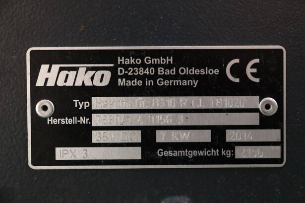 Brand: Hako Type: Hakomatic B310 R CL Serial number: 7580414 0156 3 Year of construction: 2014 Fuel: Electric Operating hours read: 1162 h Machine weight: 2100 kg Color: orange