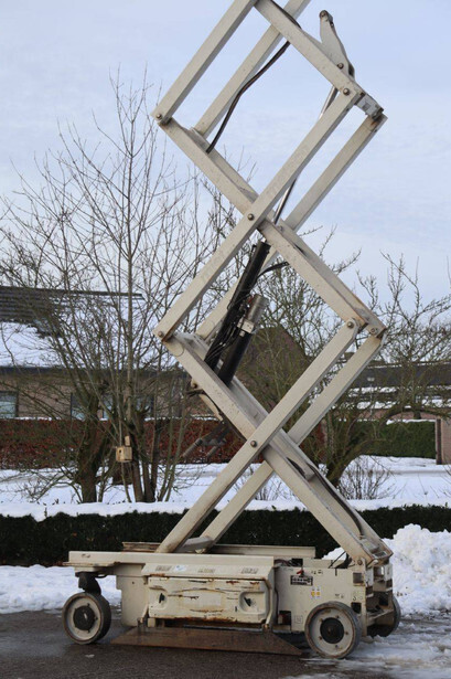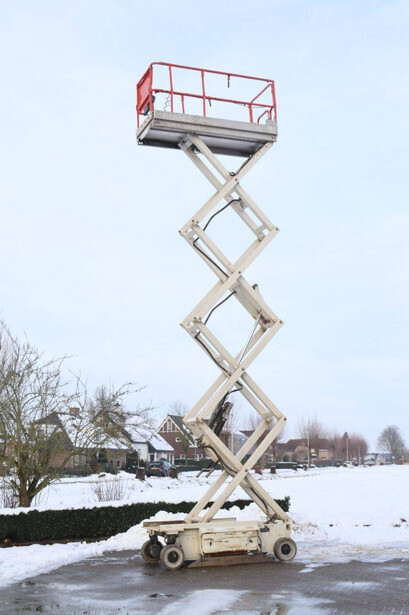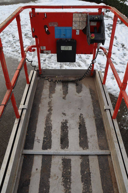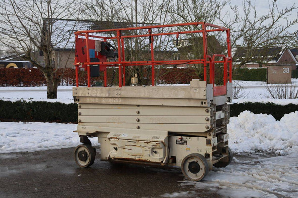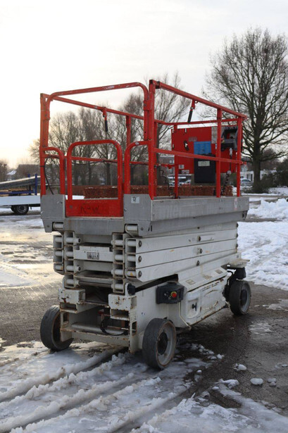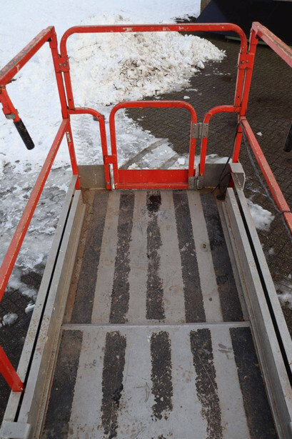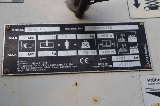 Brand: JLG Type: 2646ES Serial number: B200016378 Year of construction: 2014 Fuel: Electric Lifting capacity: 230 kg Working height: 9.92 m Reading operating hours: 145 h Machine weight: 2741 kg Chassis: Wheels Type: Scissor lift Tires: Non-marking tires Color: orange