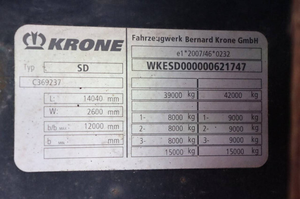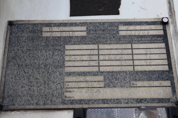 Merk: Krone Type: Cool Liner Chassisnummer: WKESD000000621747 Bouwjaar: 2014 MTM: 39000 kg Aantal assen: 3 Remmen: Niet bekend Afmetingen: L: 14040 mm, W: 2600 mm Afgelezen Kilometerstand: Niet bekend