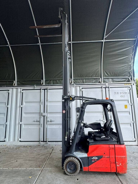 Brand: Linde Type: E16C-02 Serial number: H2X386E57962 Year of construction: 2014 Fuel: Electric Mast type: Triplex Sideshift: Yes Lifting capacity: 1600 kg Lifting height: Not known Operating hours read: 6768 h Machine weight: 3500 kg Tires: Non-marking tires Color: orange