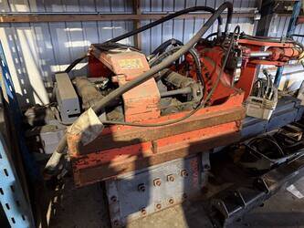 This 2014 MOVAX SG-75TR is a standard-frequency, non-variable side grip pile driver, equipped with modular arms and currently fitted with sheet pile clamps.