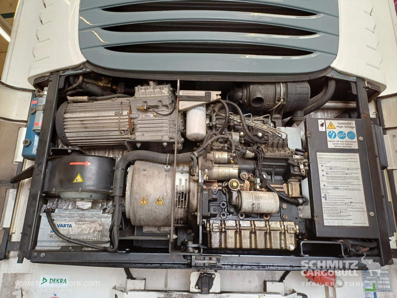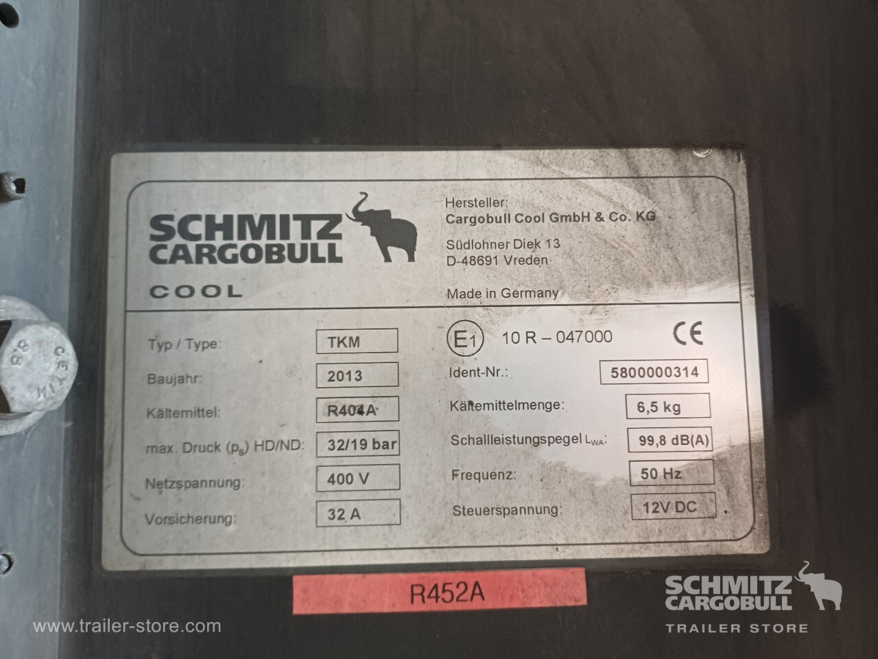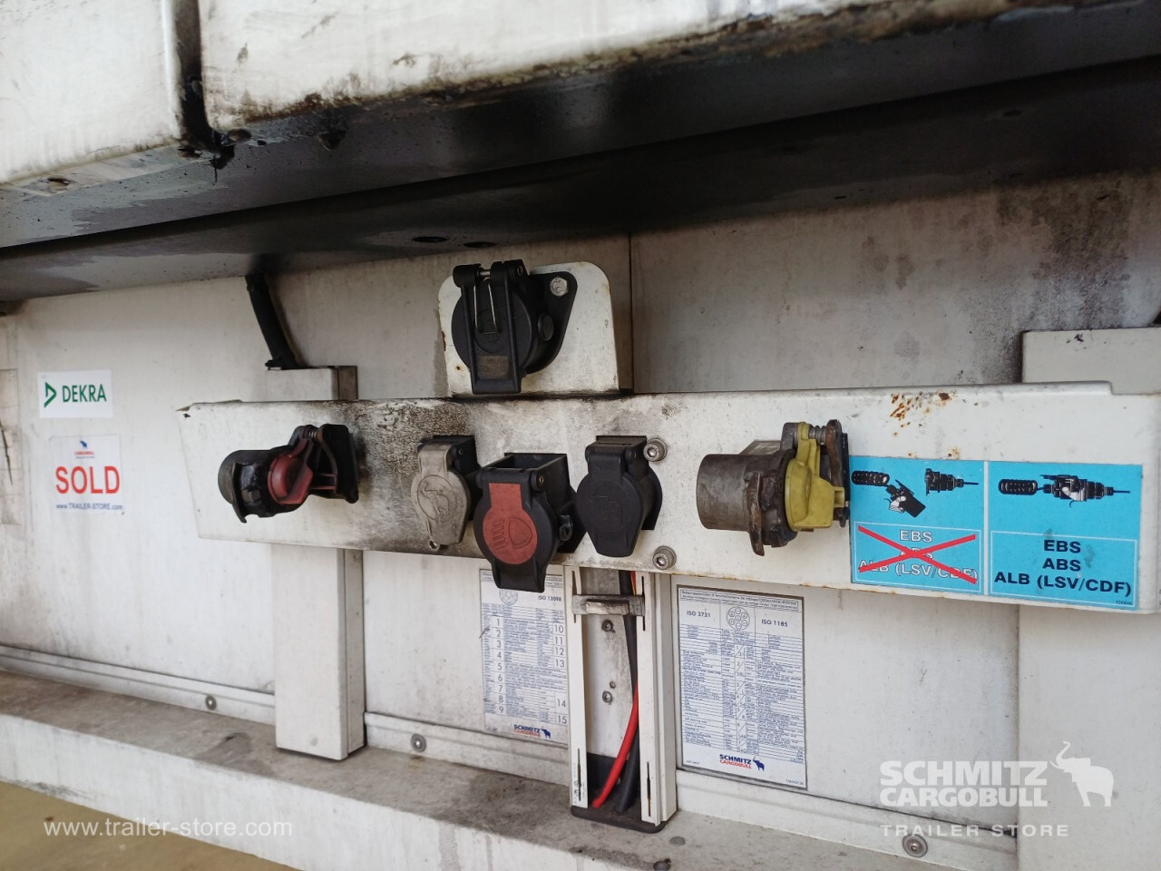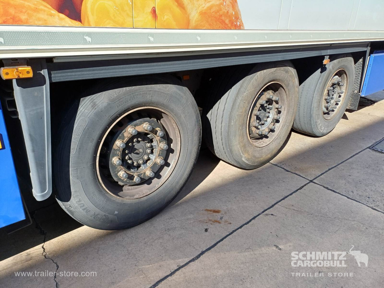 Remarks: **Safety**\\Rear underrun, Antilock Braking System ABS\\\\**Interior**\\Temperature recorder, Double deck with beams\\\\**Exterior**\\Air suspension, Lift axle front, Pallet box, Spare wheel carrier double, Bolted chassis, Gantry doors, 1x15 and 2x7 pin plug, Antispray, International customs seals, Stowage box\\\\**Brake system**\\Disc brake, Schmitz ROTOS\\\\**Wall**\\Frontwall recess for cooling, Wall thickness45 mm\\\\**Wand**\\Stirnwand verstärkt\\\\**Cooling unit**\\Schmitz Cargobull, Diesel/Elektro\\\\**Loading area**\\Length 13.410 mm, Width 2.490 mm, Height 2.650 mm, Volume 88 m³\\\\**Tyre sizes**\\1. Achse: 385/65 R22.5 , Tread depth: 5 mm / 5 mm, 2. Achse: 385/65 R22.5 , Tread depth: 3 mm / 8 mm, 3. Achse: 385/65 R22.5 , Tread depth: 7 mm / 4 mm\\\\**Other dimensions and weights**\\GVW: 36.000 kg\\\\----