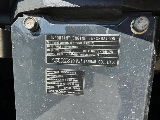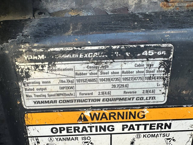 Brand: Yanmar Type: VIO45-6B Serial number: 60630 Year of construction: 2014 Fuel: Not known Engine power: 40 HP Engine brand: Yanmar 4TNV88 Number of cylinders: 4 Quick change: No Operating hours read: 721 h Machine weight: 4735 kg Running gear: Tracks Color: yellow Transport dimensions: 5750x1950x2500mm Track width: 350mm Tray width: 650mm