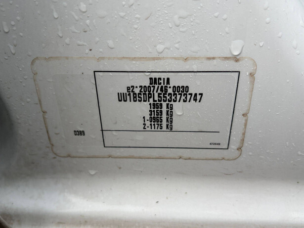Brand: Dacia Model: Dokker 1.5 CDI 90 Ambiance Chassis number: UU18SDPL553373747 Date of first registration: 2015 Model term: 05-2013 to 04-2021 Fuel: Diesel Engine power: 90 HP Transmission: Manual Cylinder capacity: 1461 cc Odometer reading: 141051 KM Color: white