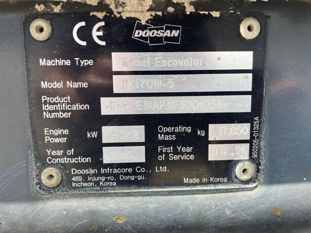 Get a detailed inspection report for 2015 Doosan DX170W-5 and buy with complete peace of mind.