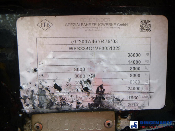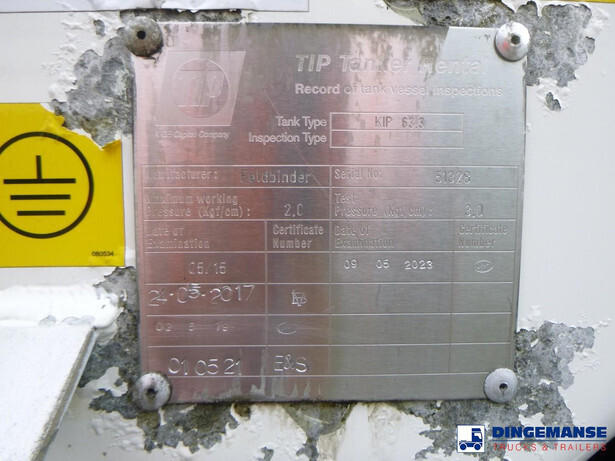 NON DUTY FREE VEHICLE, REQUIRES CUSTOMS CLEARANCE // Aluminium powder tank with hydraulic tipping system, Capacity 63000 liters, 1 Compartment, Year of construction 2015, Test pressure 3.0 bar, Max working pressure 2.0 bar, Air suspension, BPW Eco Plus axles, Drum brakes, Alloy wheels, ABS, Shipment dimensions 1340x250x360 cm