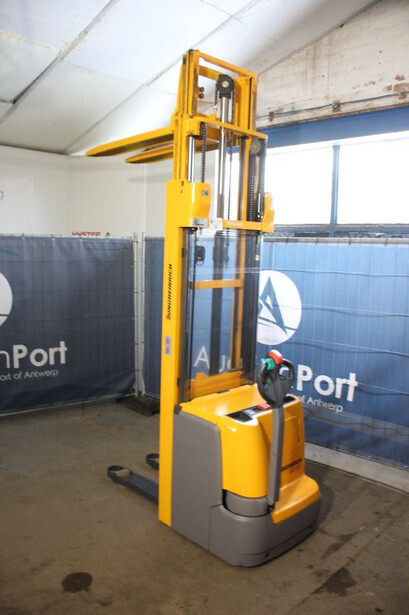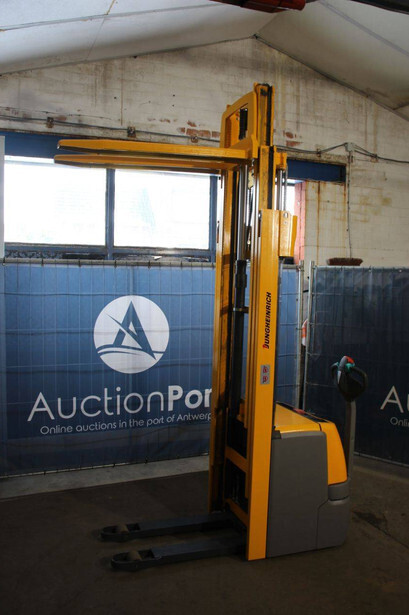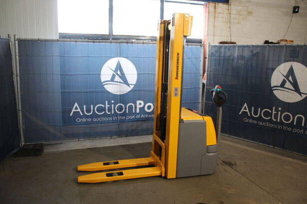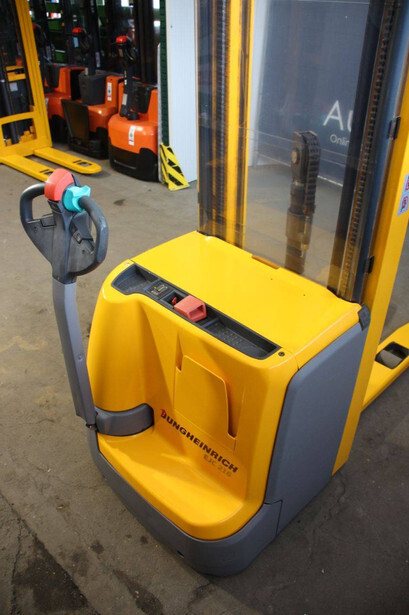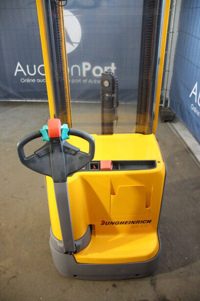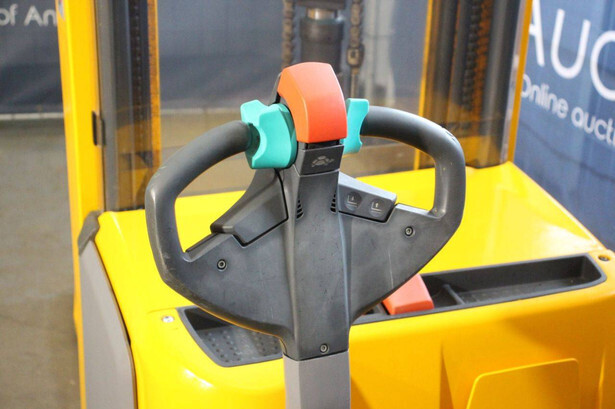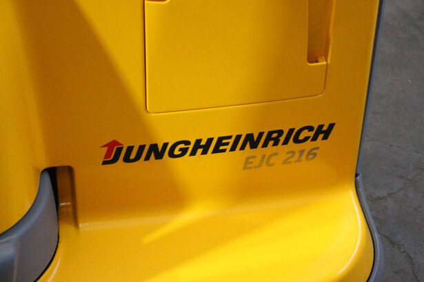 Brand: Jungheinrich Type: EJC 216 Serial number: 90409794 Year of construction: 2015 Fuel: Electric Mast type: Duplex Lifting capacity: 1600 kg Lifting height: 5250 mm Drive-through height: 2250 mm Reading operating hours: 1734 h Machine weight: 1281 kg Color: yellow