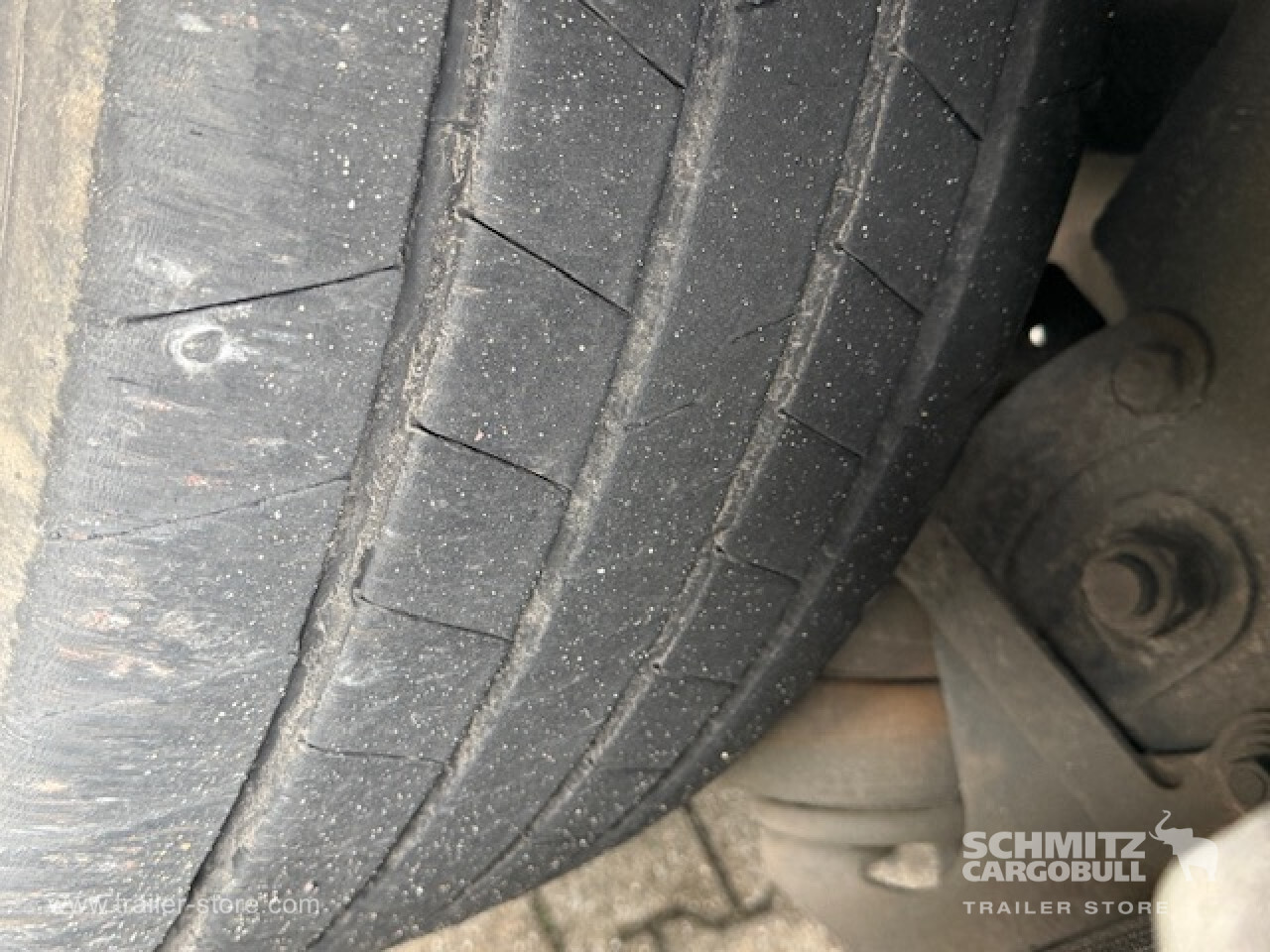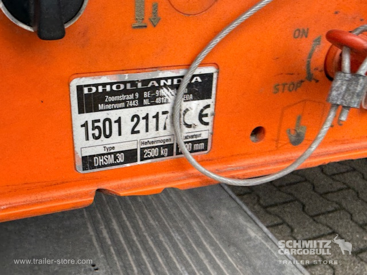 Remarks: **Safety**\\Rear underrun, Antilock Braking System ABS\\\\**Interior**\\ISO partition wall without ventilators, Temperature recorder\\\\**Exterior**\\Air suspension, Lift axle rear, Taillift: dhollandia 2500 KG, 1x15 and 2x7 pin plug, Antispray, Load Spread Program: + optilevel\\\\**Further equipment**\\ APK : 24 Maart 2027\\\\**Cargo securing**\\Load securing rail\\\\**Brake system**\\Disc brake, Schmitz ROTOS\\\\**Floor**\\Aluminum floor\\\\**Wall**\\Wall thickness45 mm\\\\**Cooling unit**\\Carrier Vector 1550, Diesel/Elektro\\\\**Loading area**\\Length 13.410 mm, Width 2.490 mm, Height 2.650 mm, Volume 88 m³\\\\**Tyre sizes**\\ 385/65 22.5 , 385/65 22.5 , 385/65 22.5\\\\**Other dimensions and weights**\\Payload: 33.663 kg, GVW: 42.000 kg\\\\----