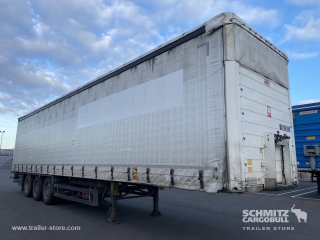 Remarks: **Safety**\\Rear underrun, Antilock Braking System ABS\\\\**Exterior**\\Air suspension, Toolbox, Spare wheel carrier, Bolted chassis, Sliding roof, 1x15 and 2x7 pin plug, Antispray\\\\**Cargo securing**\\Cargo securing with certificate, DIN EN 12642 (code XL) certificate, Punched load securing side rave, Wooden - support slats\\\\**Brake system**\\Disc brake, Schmitz ROTOS\\\\**Floor**\\Wooden floor, Lashing rings in floor\\\\**Loading area**\\Length 13.620 mm, Width 2.480 mm, Height 2.780 mm, Volume 91 m³\\\\**Tyre sizes**\\1. Achse: 385/65 R22.5 , Tread depth: 13 mm / 11 mm, 2. Achse: 385/65 R22.5 , Tread depth: 8 mm / 8 mm, 3. Achse: 385/65 R22.5 , Tread depth: 7 mm / 10 mm\\\\**Other dimensions and weights**\\Payload: 31.348 kg, GVW: 38.000 kg\\\\----