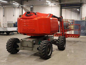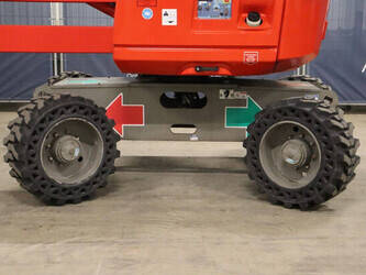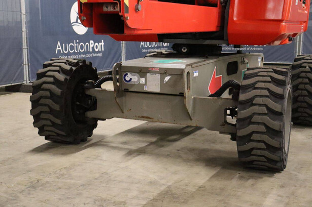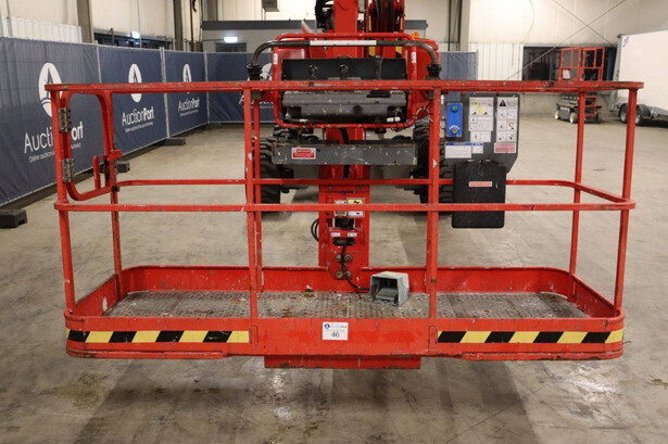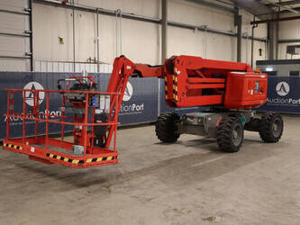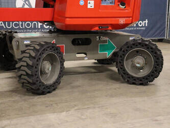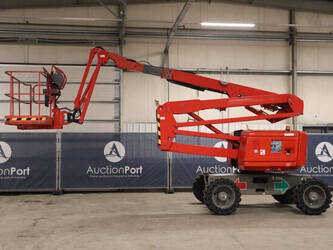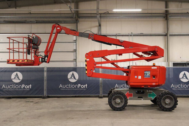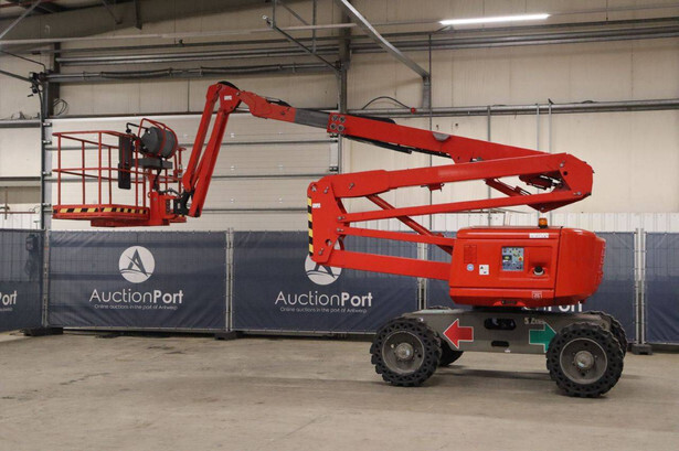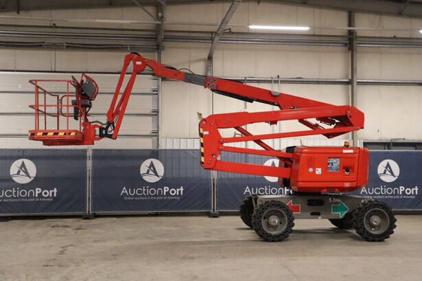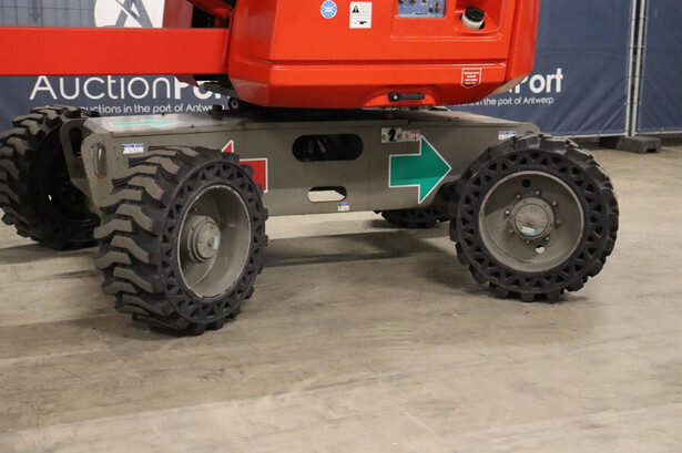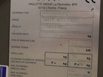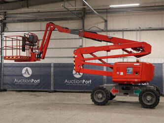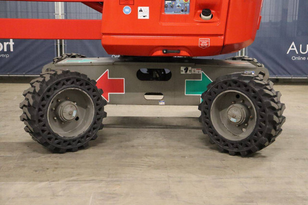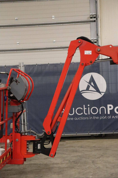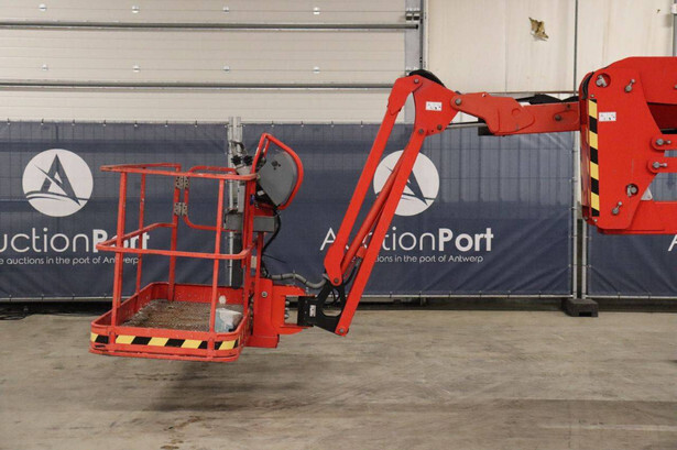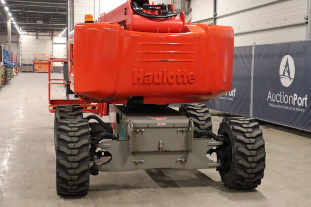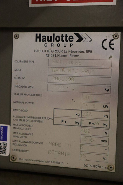 Brand: Haulotte Type: HA16 RTJ PRO Serial number: 2001190 Year of construction: 2016 Fuel: Diesel Lifting capacity: 230 kg Working height: 16 m Reading operating hours: 2133 h Machine weight: 6650 kg Chassis: Wheels Type: Articulated boom lift Tires: Pneumatic tires Color: red