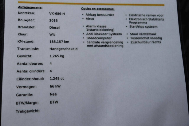 Brand: Opel Model: Combo Chassis number: W0L6ZYC1AG9583760 Date of first registration: 2016 Fuel: Diesel Engine power: 90 HP Transmission: Manual Cylinder capacity: 1248 cc Odometer reading: 185161 KM Color: white