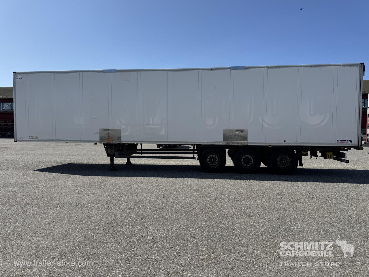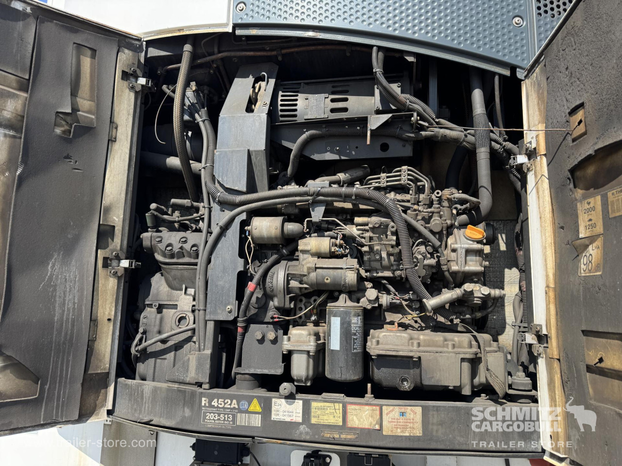 Remarks: **Safety**\\Rear underrun, Antilock Braking System ABS\\\\**Interior**\\Double deck\\\\**Exterior**\\Air suspension, Lift axle, 1x15 pin plug, Antispray\\\\**Brake system**\\Disc brake, Schmitz Cargobull\\\\**Cooling unit**\\Thermoking SLXi Spectrum, Diesel/Elektro, 22.587 Operating hours Diesel, 1.643 Operating hours electric\\\\**Loading area**\\Length 13.410 mm, Width 2.490 mm, Height 2.700 mm, Volume 90 m³\\\\**Tyre sizes**\\1. Achse: 385/65 R22.5 , Tread depth: 10 mm / 10 mm, 2. Achse: 385/65 R22.5 , Tread depth: 9 mm / 10 mm, 3. Achse: 385/65 R22.5 , Tread depth: 7 mm / 7 mm\\\\**Other dimensions and weights**\\GVW: 4.200 kg, Wheel base: 8.100 mm\\\\----Thermo King cooling unit, 406 external / 270 internal height, 18t king pin, 810 wheelbase MOT/PKK 30.9.25