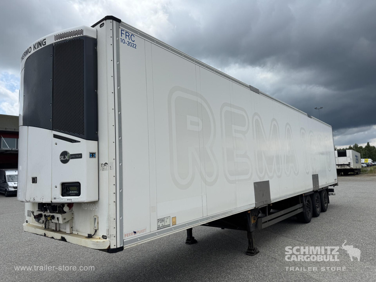 Remarks: **Safety**\\Rear underrun, Antilock Braking System ABS, Telematics system\\\\**Interior**\\Temperature recorder, Double deck\\\\**Exterior**\\Air suspension, Lift axle, 1x15 and 2x7 pin plug, Antispray, Hooklift\\\\**Brake system**\\Disc brake, Schmitz ROTOS\\\\**Cooling unit**\\Thermoking SLXi Spectrum, Diesel/Elektro, 1.677 Operating hours Diesel, 344 Operating hours electric\\\\**Loading area**\\Length 13.410 mm, Width 2.490 mm, Height 2.700 mm, Volume 90 m³\\\\**Tyre sizes**\\1. Achse: 385/65 R22.5 , Tread depth: 8 mm / 8 mm, 2. Achse: 385/65 R22.5 , Tread depth: 9 mm / 9 mm, 3. Achse: 385/65 R22.5 , Tread depth: 5 mm / 5 mm\\\\**Other dimensions and weights**\\Payload: 32.776 kg, GVW: 42.000 kg\\\\----Thermo King cooling unitDiesel hrs: 16771 EL hrs: 344406 external 270 internal height18t king pin810 wheelbase