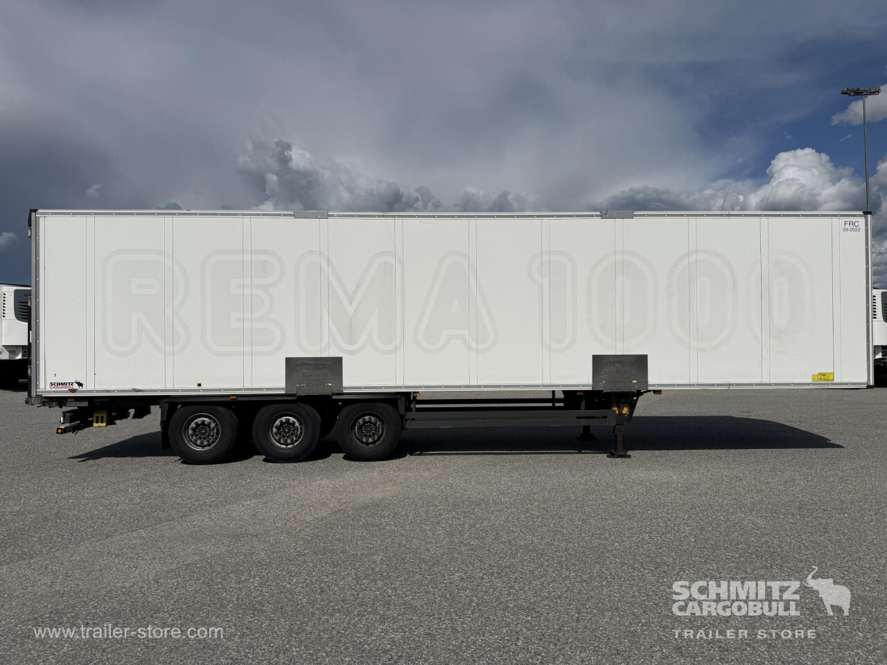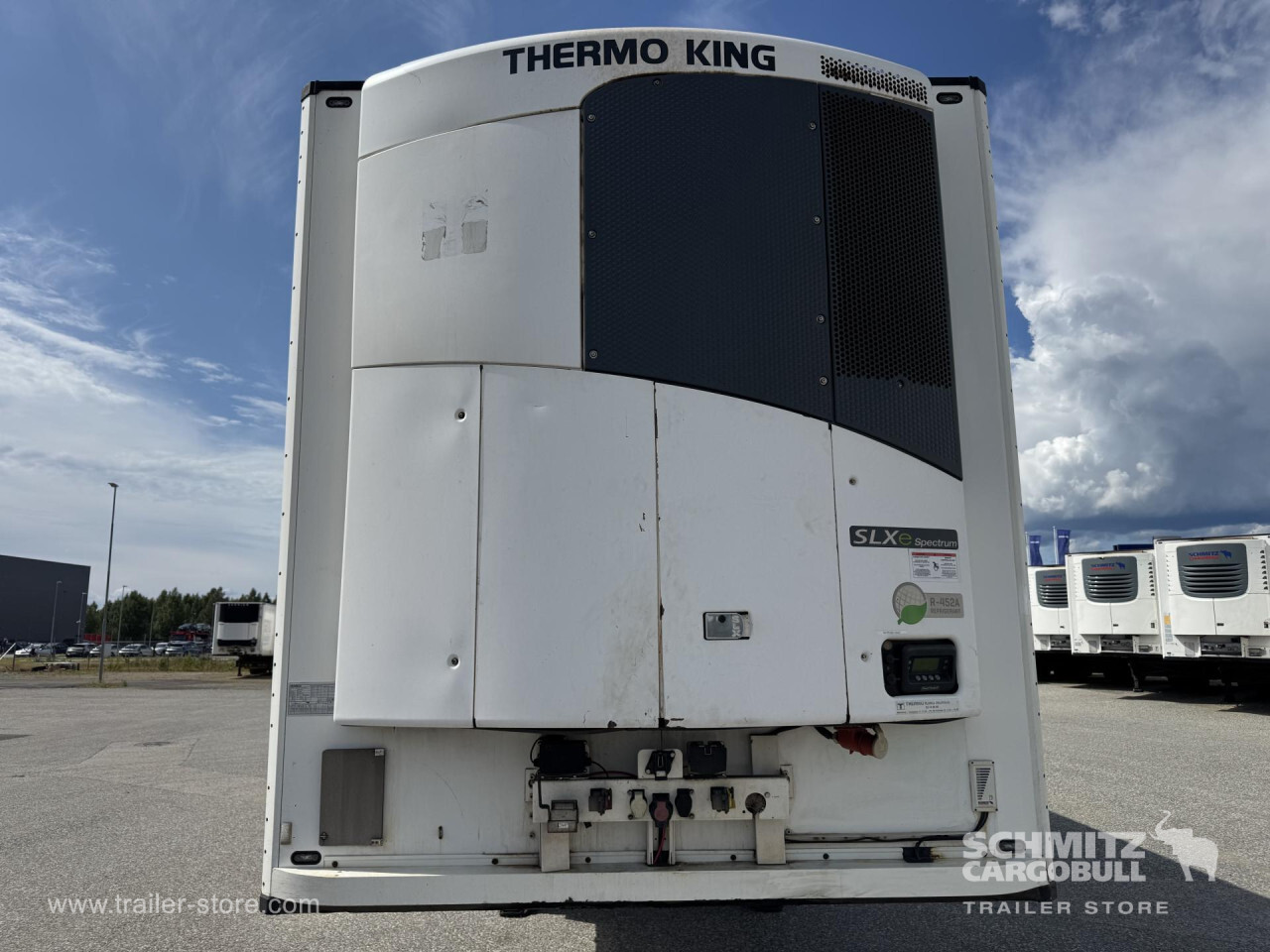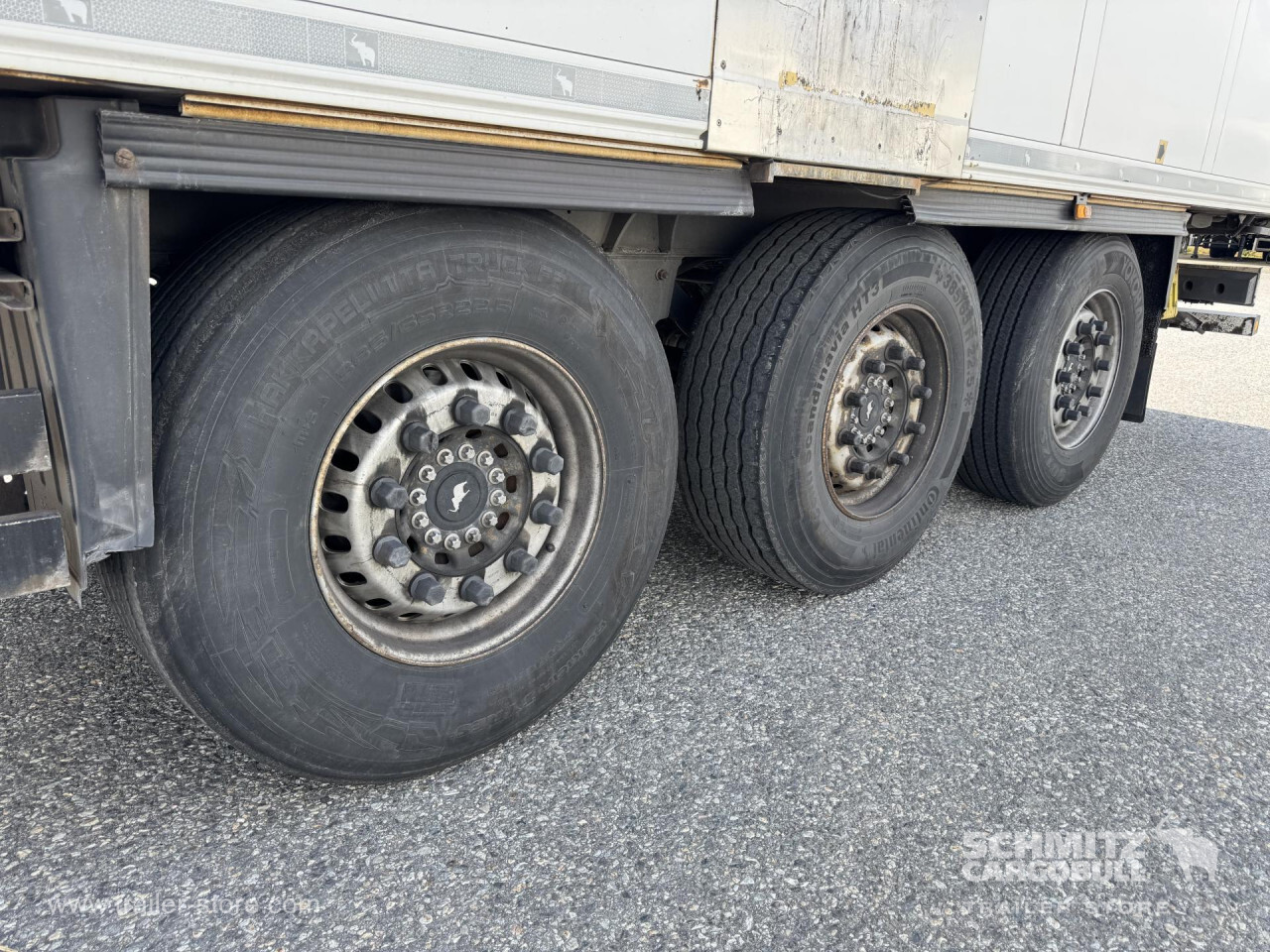Remarks: **Safety**\\Rear underrun, Antilock Braking System ABS\\\\**Exterior**\\Air suspension, 1x15 and 2x7 pin plug, Antispray\\\\**Brake system**\\Disc brake, Schmitz Cargobull\\\\**Cooling unit**\\Thermoking SLXe Spectrum, Diesel/Elektro, 23.583 Operating hours Diesel, 189 Operating hours electric\\\\**Loading area**\\Length 13.410 mm, Width 2.490 mm, Height 2.700 mm, Volume 90 m³\\\\**Tyre sizes**\\1. Achse: 385/65 R22.5 , Tread depth: 12 mm / 11 mm, 2. Achse: 385/65 R22.5 , Tread depth: 12 mm / 13 mm, 3. Achse: 385/65 R22.5 , Tread depth: 11 mm / 10 mm\\\\**Other dimensions and weights**\\Payload: 32.776 kg, GVW: 42.000 kg, Wheel base: 8.100 mm\\\\----Thermo King cooling unitDiesel hrs 23.583El hrs 189406 external 270 internal heightMOT/PKK 15.5.26