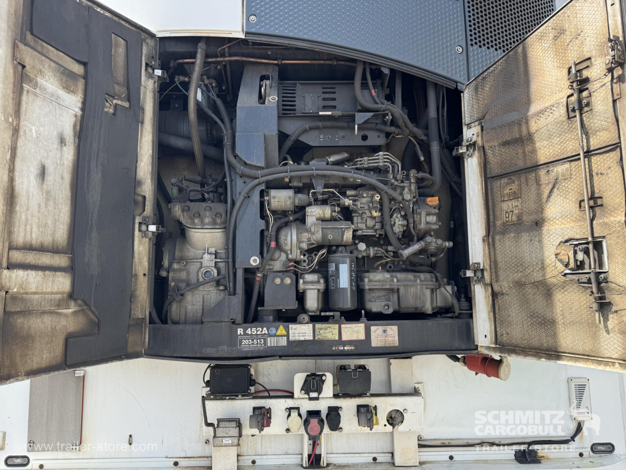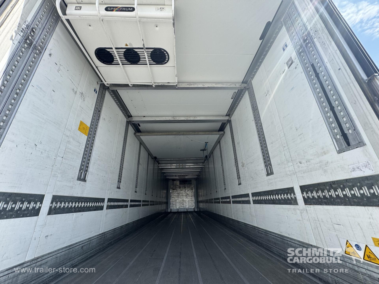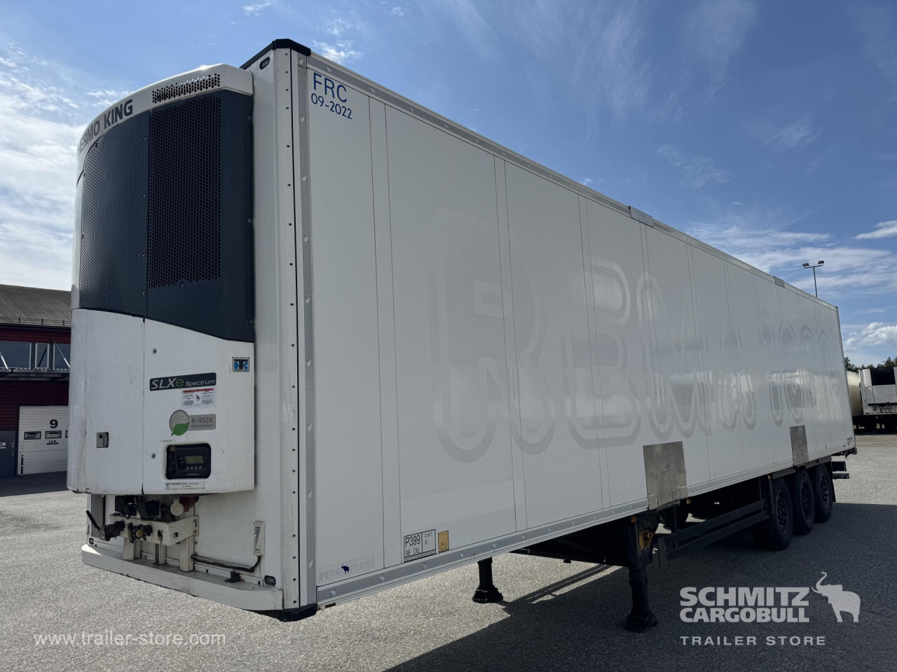 Remarks: **Safety**\\Rear underrun, Antilock Braking System ABS\\\\**Exterior**\\Air suspension, 1x15 and 2x7 pin plug, Antispray\\\\**Brake system**\\Disc brake, Schmitz Cargobull\\\\**Cooling unit**\\Thermoking SLXe Spectrum, Diesel/Elektro, 23.583 Operating hours Diesel, 189 Operating hours electric\\\\**Loading area**\\Length 13.410 mm, Width 2.490 mm, Height 2.700 mm, Volume 90 m³\\\\**Tyre sizes**\\1. Achse: 385/65 R22.5 , Tread depth: 12 mm / 11 mm, 2. Achse: 385/65 R22.5 , Tread depth: 12 mm / 13 mm, 3. Achse: 385/65 R22.5 , Tread depth: 11 mm / 10 mm\\\\**Other dimensions and weights**\\Payload: 32.776 kg, GVW: 42.000 kg, Wheel base: 8.100 mm\\\\----Thermo King cooling unitDiesel hrs 23.583El hrs 189406 external 270 internal heightMOT/PKK 15.5.26