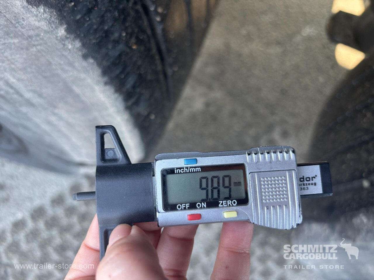 Remarks: **Safety**\\Rear underrun, Antilock Braking System ABS\\\\**Exterior**\\Air suspension, Pallet box, Toolbox, Spare wheel carrier double, Ferry lashings, Bolted chassis, Sliding roof, 1x15 and 2x7 pin plug, Antispray\\\\**Cargo securing**\\DIN EN 12642 (code XL) certificate, Aluminium slats\\\\**Brake system**\\Disc brake, Schmitz ROTOS\\\\**Loading area**\\Length 13.620 mm, Width 2.480 mm, Height 2.780 mm, Volume 93 m³\\\\**Tyre sizes**\\1. Achse: 385/65 R22.5 , Tread depth: 9 mm / 9 mm, 2. Achse: 385/65 R22.5 , Tread depth: 8 mm / 7 mm, 3. Achse: 385/65 R22.5 , Tread depth: 12 mm / 9 mm\\\\**Other dimensions and weights**\\Payload: 32.242 kg, GVW: 39.000 kg, Wheel base: 7.700 mm\\\\----