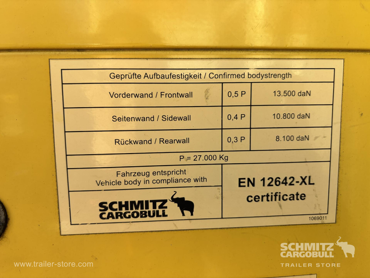 Remarks: **Safety**\\Rear underrun, Antilock Braking System ABS\\\\**Exterior**\\Air suspension, Lift axle, Pallet box, Toolbox, Spare wheel carrier double, Ferry lashings, Bolted chassis, Sliding roof, 1x15 and 2x7 pin plug, Antispray\\\\**Cargo securing**\\DIN EN 12642 (code XL) certificate, Aluminium slats\\\\**Brake system**\\Disc brake, Schmitz ROTOS\\\\**Loading area**\\Length 13.620 mm, Width 2.480 mm, Height 2.780 mm, Volume 93 m³\\\\**Tyre sizes**\\1. Achse: 385/65 R22.5 , Tread depth: 7 mm / 8 mm, 2. Achse: 385/65 R22.5 , Tread depth: 4 mm / 4 mm, 3. Achse: 385/65 R22.5 , Tread depth: 5 mm / 7 mm\\\\**Other dimensions and weights**\\Payload: 32.248 kg, GVW: 39.000 kg, Wheel base: 7.700 mm\\\\----