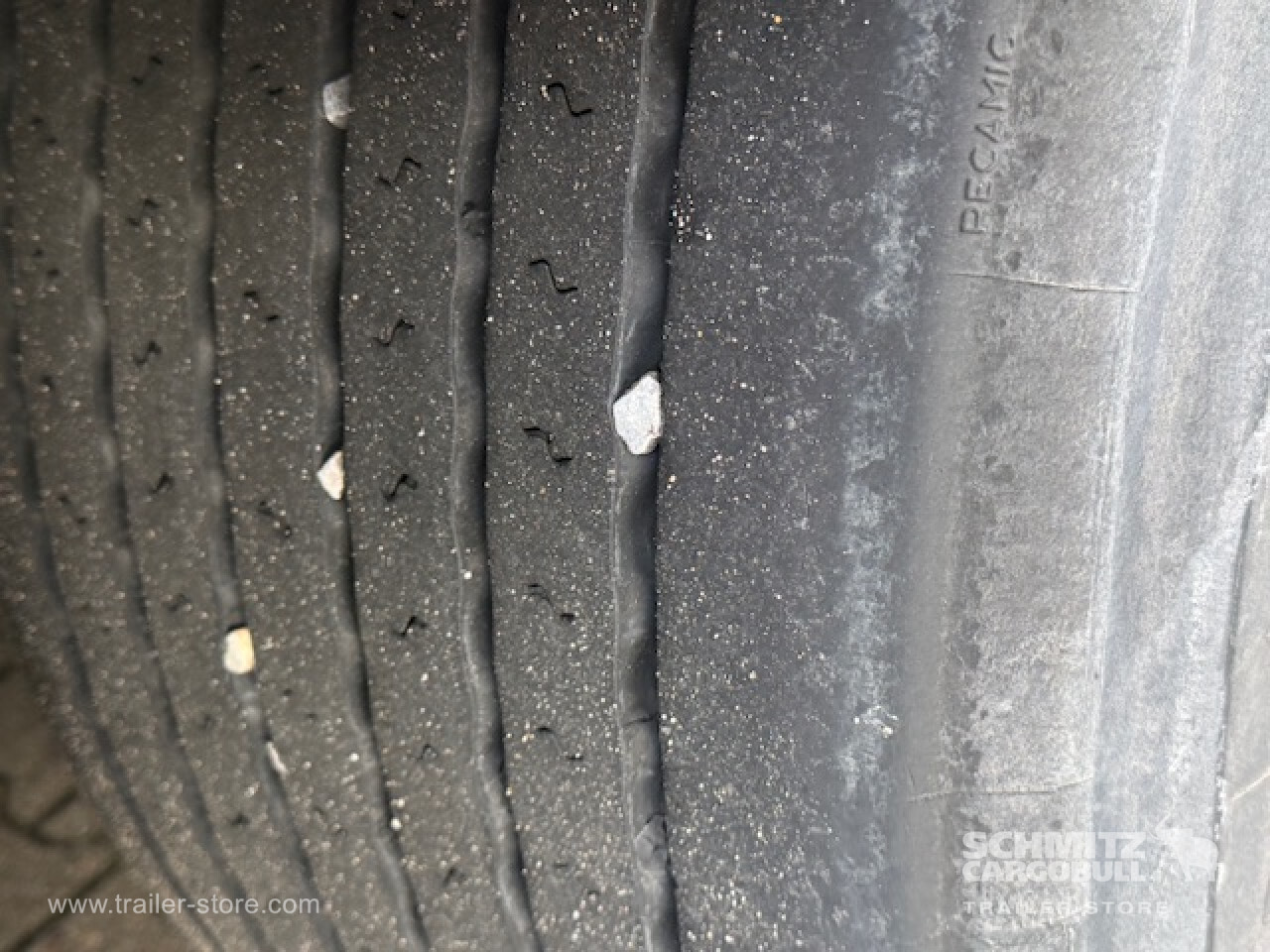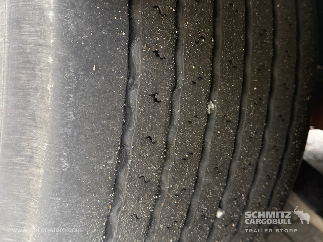 Remarks: **Safety**\\Rear underrun, Antilock Braking System ABS\\\\**Exterior**\\Air suspension, Ferry lashings, 1x15 and 2x7 pin plug, Antispray\\\\**Cargo securing**\\Cargo securing with certificate, DIN EN 12642 (code XL) certificate, Beverage certificate, Tyre transport certificate, Punched load securing side rave\\\\**Brake system**\\Disc brake, Schmitz ROTOS\\\\**Floor**\\Reinforced floor\\\\**Loading area**\\Length 13.620 mm, Width 2.480 mm, Height 3.000 mm, Volume 101 m³\\\\**Tyre sizes**\\ 445/45 19.5 , 445/45 19.5 , 445/45 19.5\\\\**Other dimensions and weights**\\Payload: 31.960 kg, GVW: 39.000 kg\\\\----