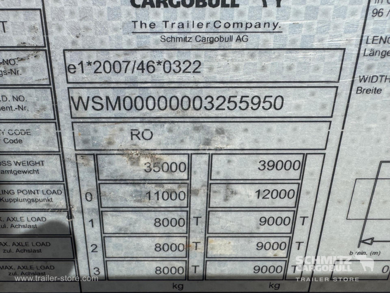 **Safety**\\Rear underrun, Antilock Braking System ABS\\\\**Exterior**\\Air suspension, 1x15 and 2x7 pin plug, Antispray\\\\**Cargo securing**\\DIN EN 12642 (code XL) certificate\\\\**Brake system**\\Disc brake, SAF\\\\**Floor**\\Wisadeck floor\\\\**Loading area**\\Length 13.620 mm, Width 2.480 mm, Height 2.900 mm, Volume 97 m³\\\\**Tyre sizes**\\1. Achse: 385/55 R22.5 , Tread depth: 5 mm / 5 mm, 2. Achse: 385/55 R22.5 , Tread depth: 8.5 mm / 8.8 mm, 3. Achse: 385/55 R22.5 , Tread depth: 11.5 mm / 7 mm\\\\**Other dimensions and weights**\\Wheel base: 7.700 mm\\\\----