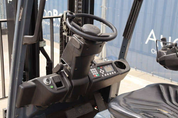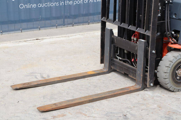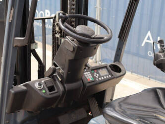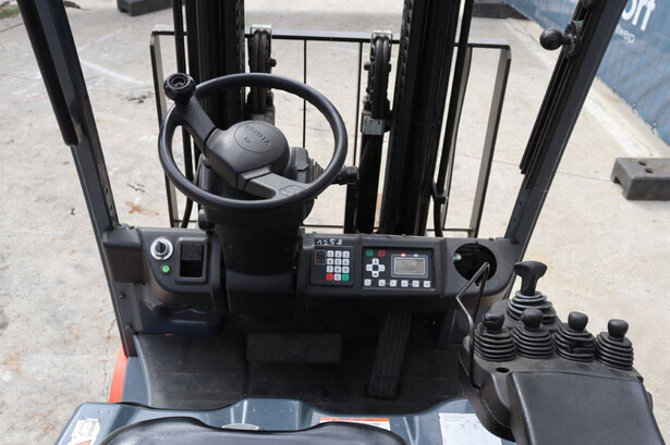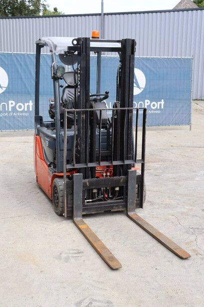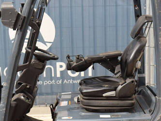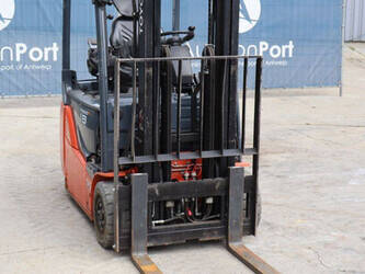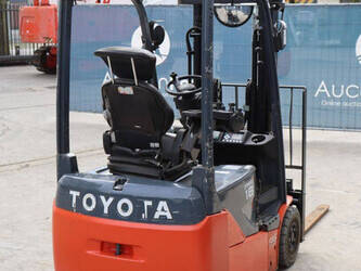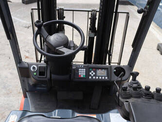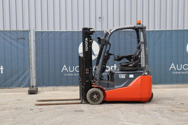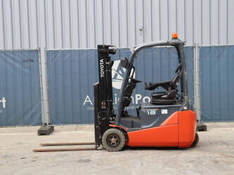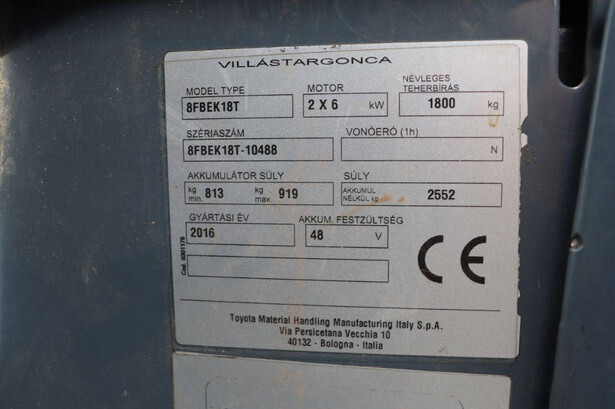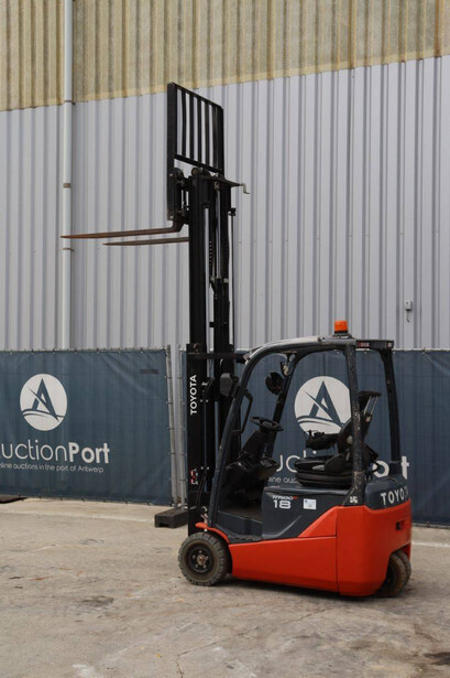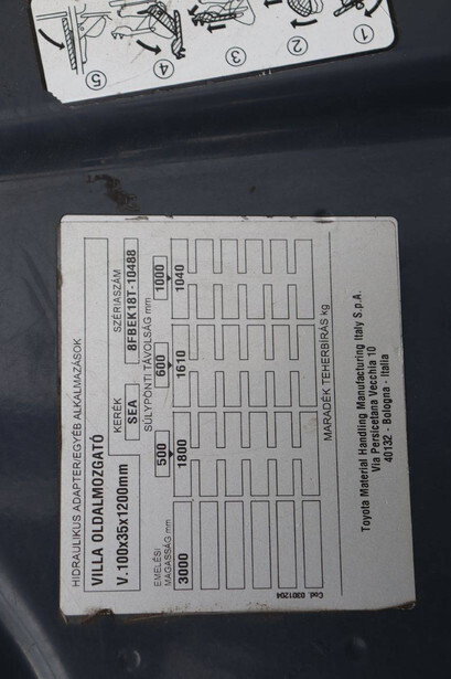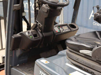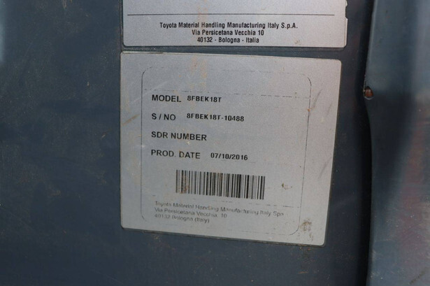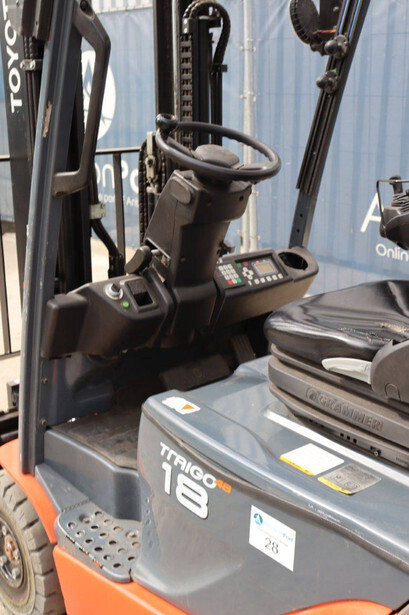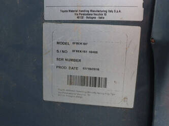 Brand: Toyota Type: Traigo 48 18 Serial number: 8FBEK18T-10488 Year of construction: 2016 Fuel: Electric Mast type: Duplex Sideshift: Yes Lifting capacity: 1800 kg Lifting height: 3000 mm Reading operating hours: 1853 h Machine weight: 2552 kg Tires: Non-marking tires Color: gray